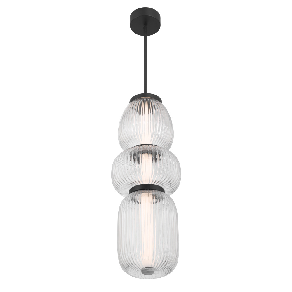 LED Mini Pendant - Dark Matte Black with Clear Ribbed Glass