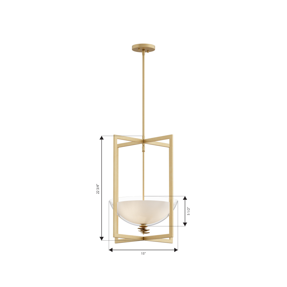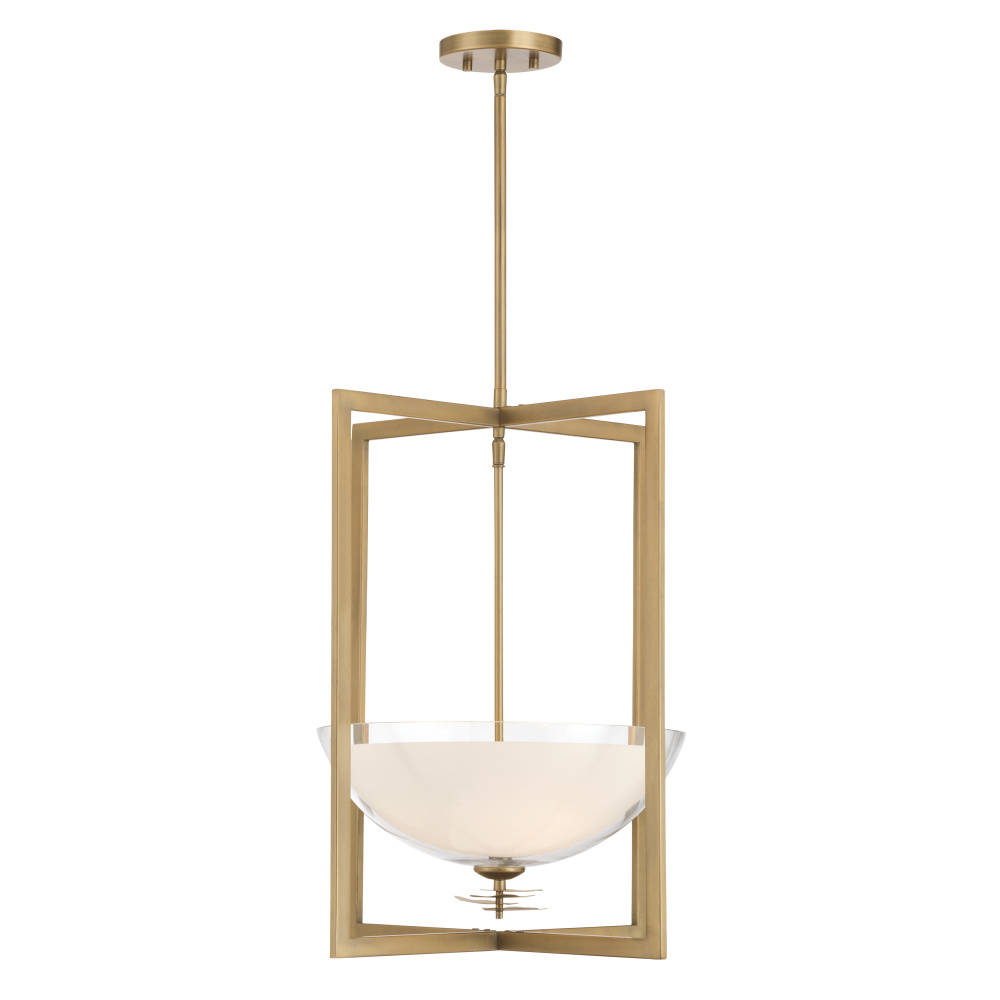 3-Light Pendant - Legacy Brass with Clear and Opal White Glass