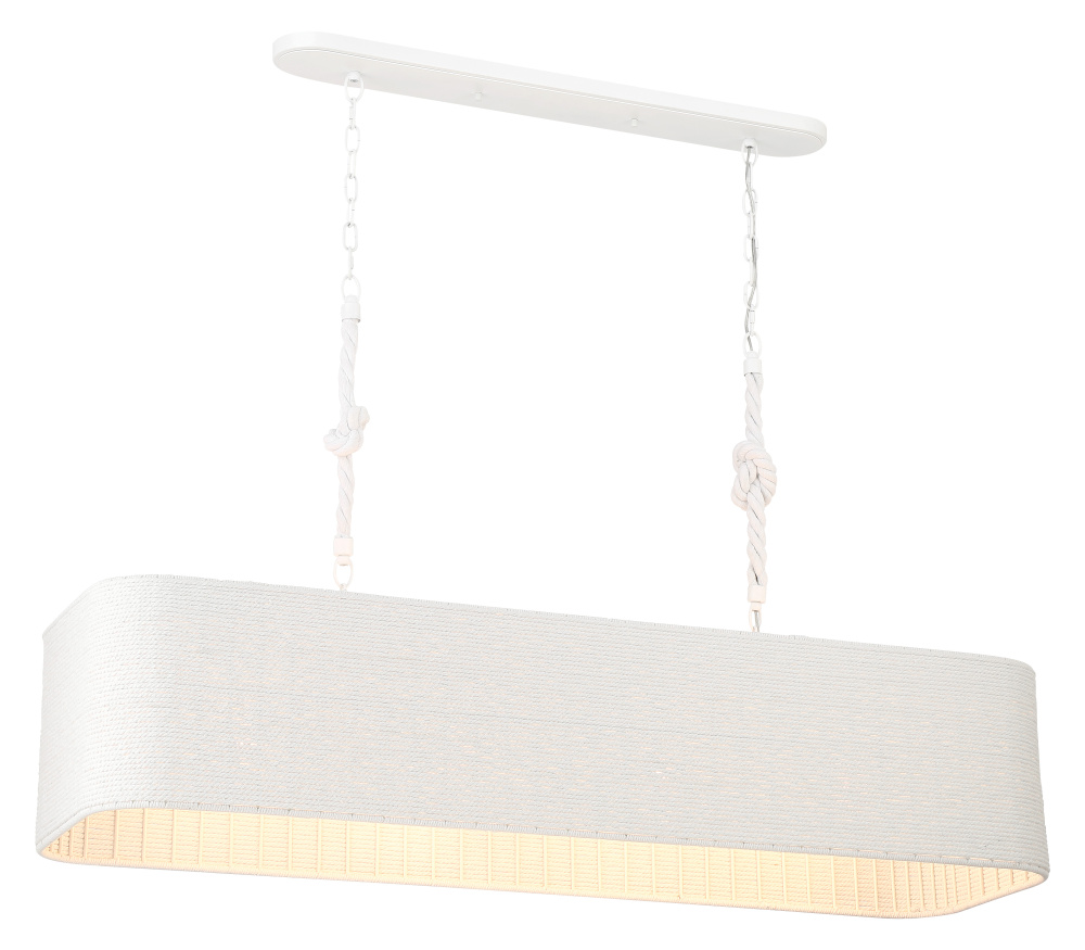 4 Light Island in Matte White Finish and White Cotton Rope Shade