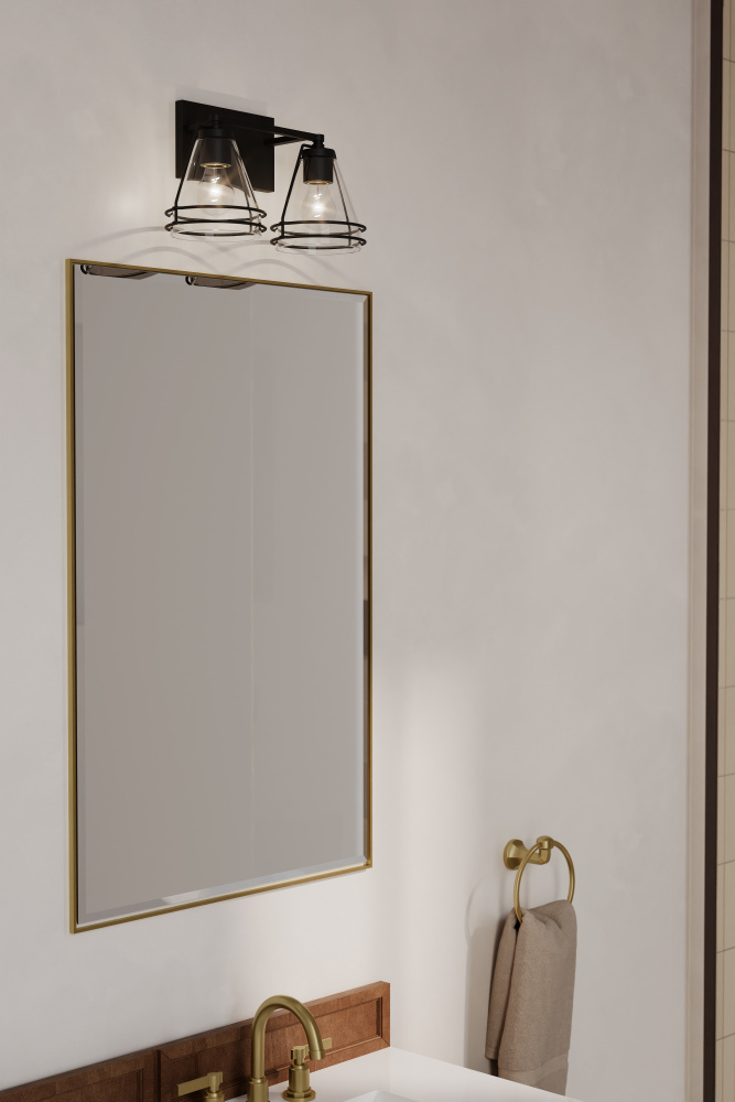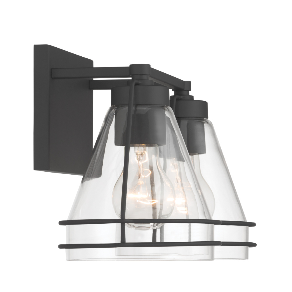 2-Light Vanity - Dark Matte Black with Clear Glass