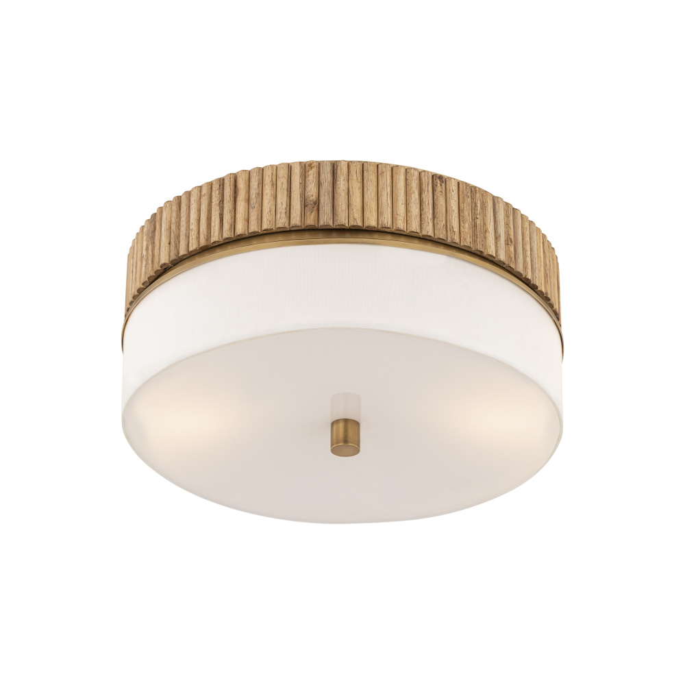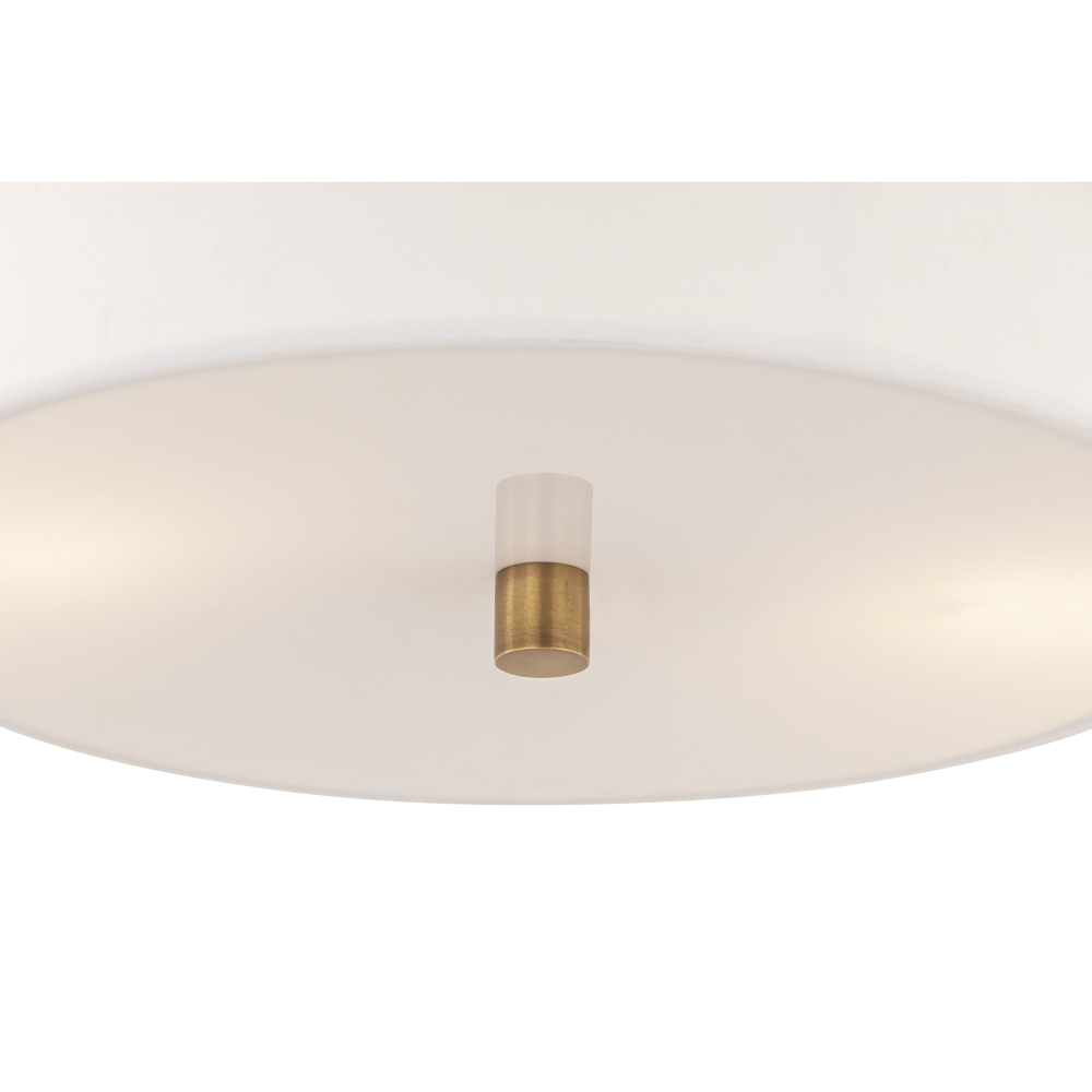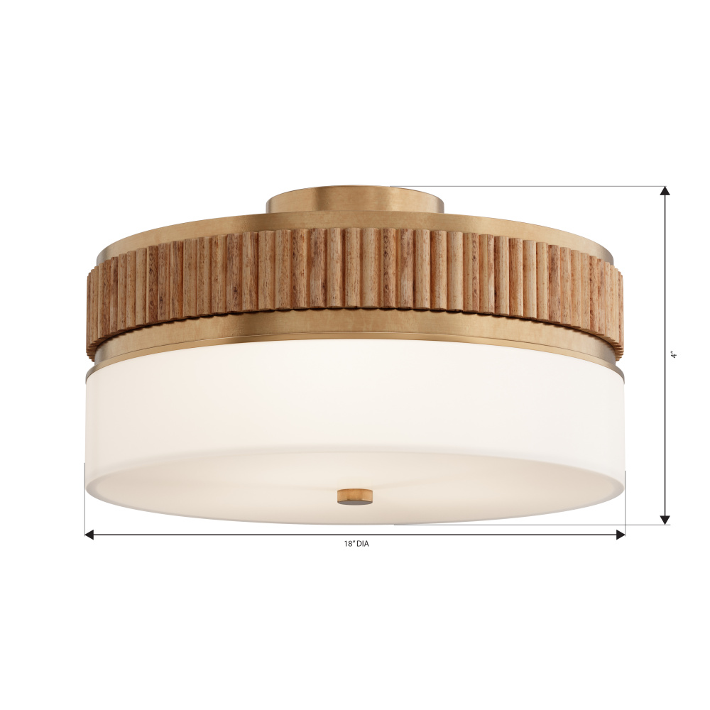 3-Light Semi-Flush Mount - Legacy Brass and Natural Wood with White Linen