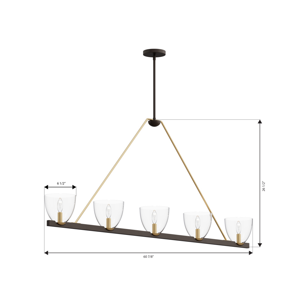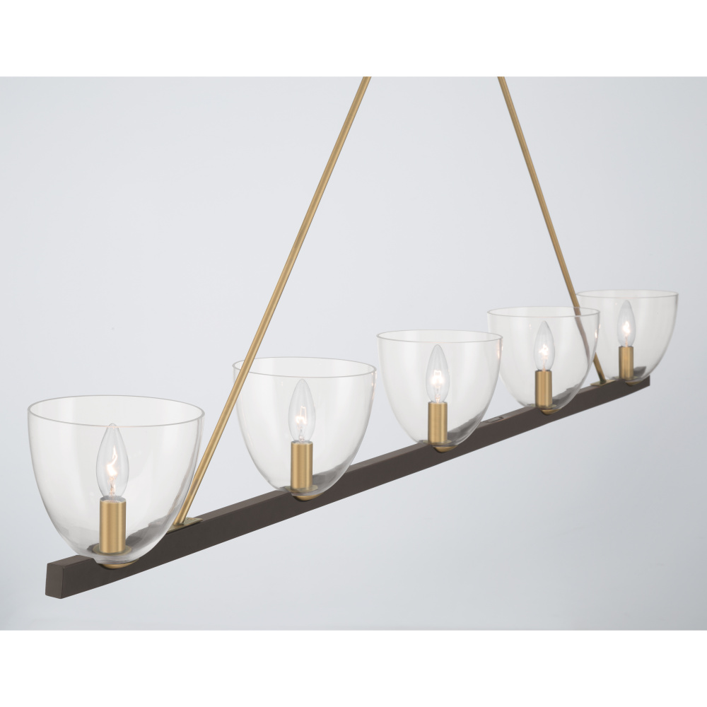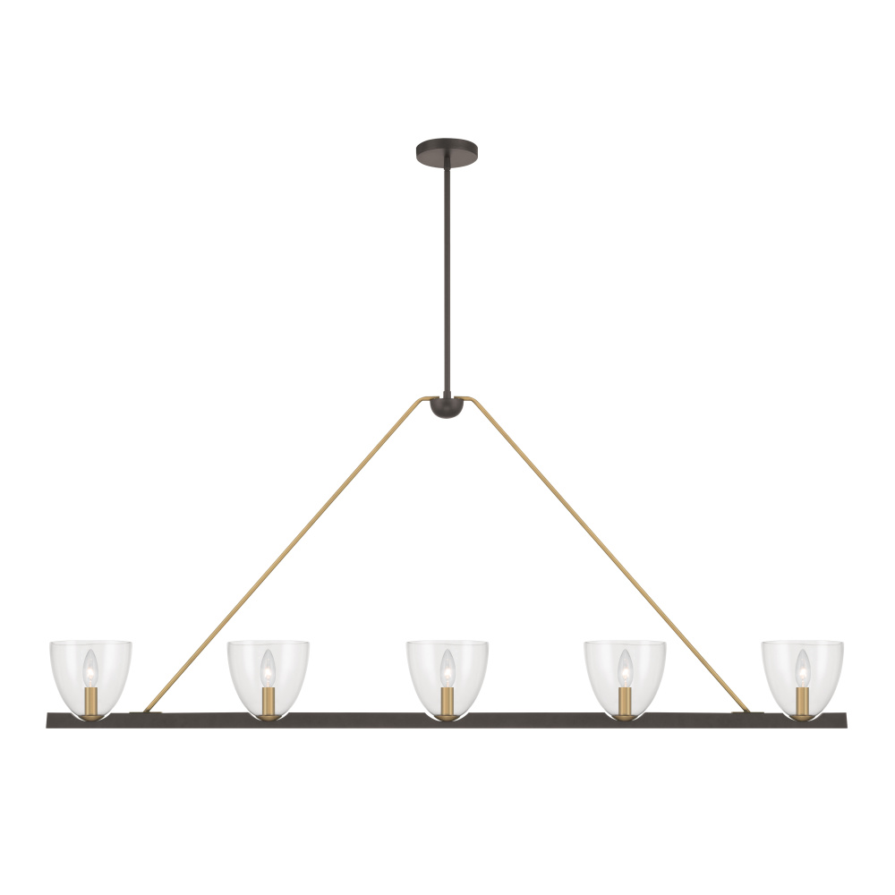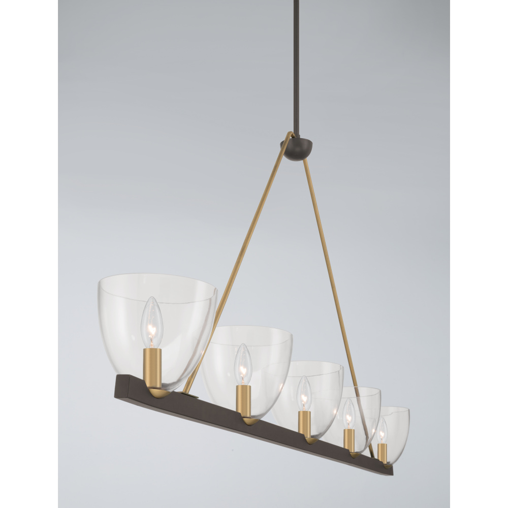 5-Light Linear Chandelier - Dark Bronze and Legacy Brass with Clear Glass