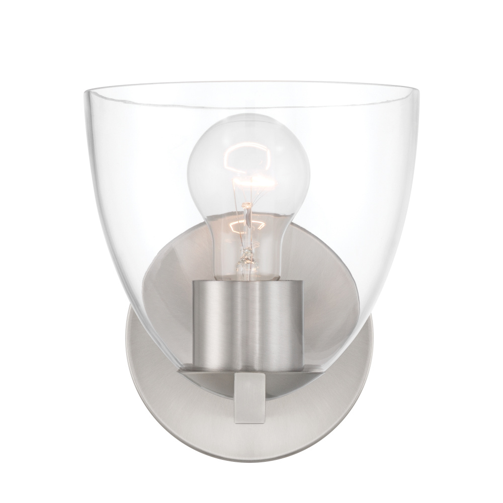 1-Light Bath Sconce - Brushed Nickel with Clear Glass