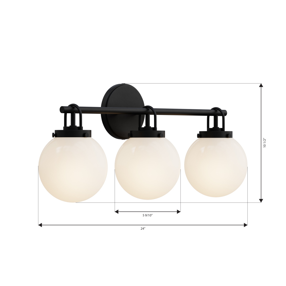 3-Light Vanity - Dark Matte Black with Etched Opal Glass