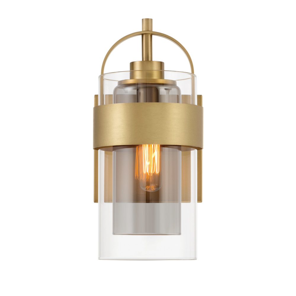 1-Light Bath Sconce - Legacy Brass with Clear and Grey Glass