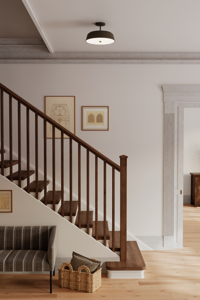 The Trellwyn semi-flush mount blends transitional lines with warm, inviting illumination.