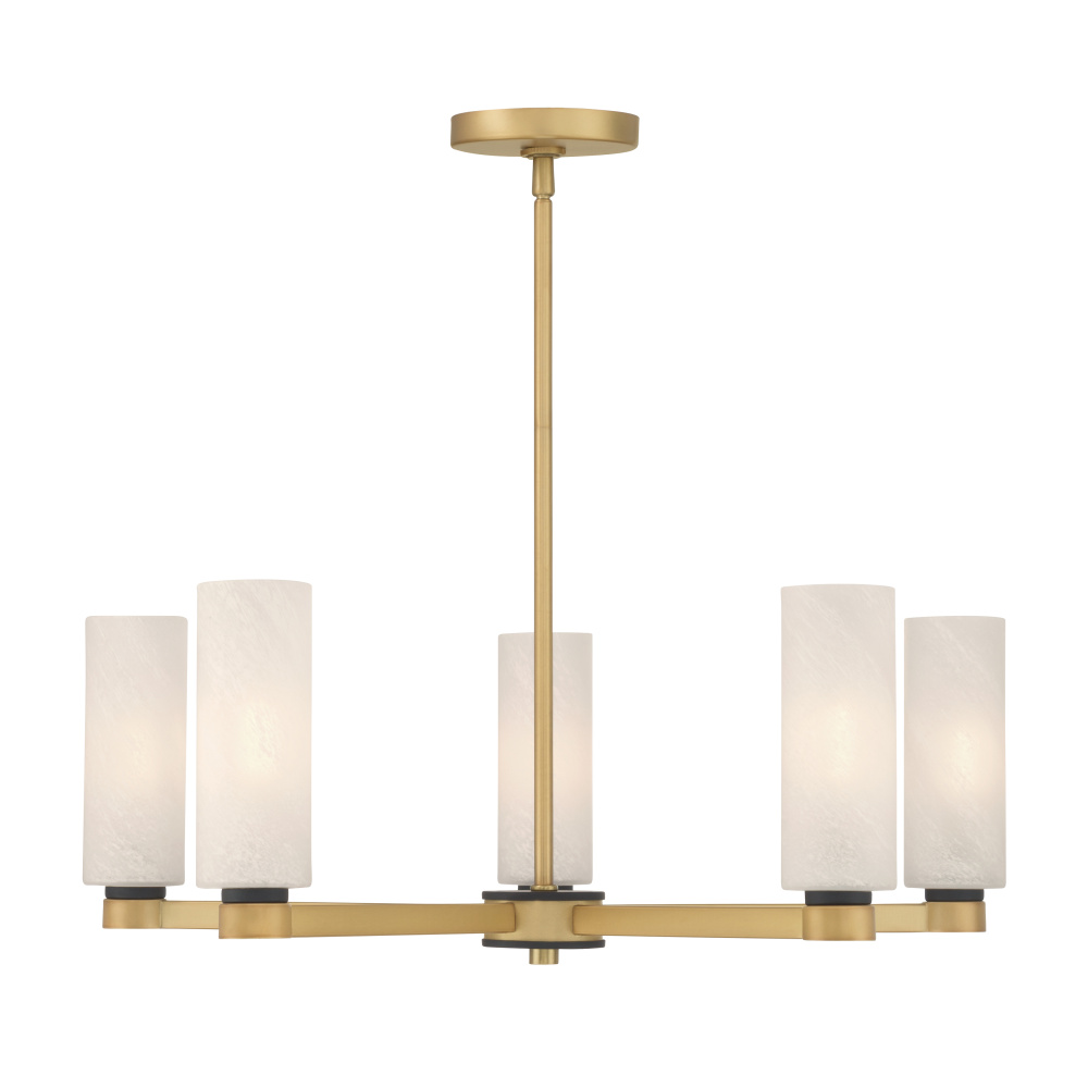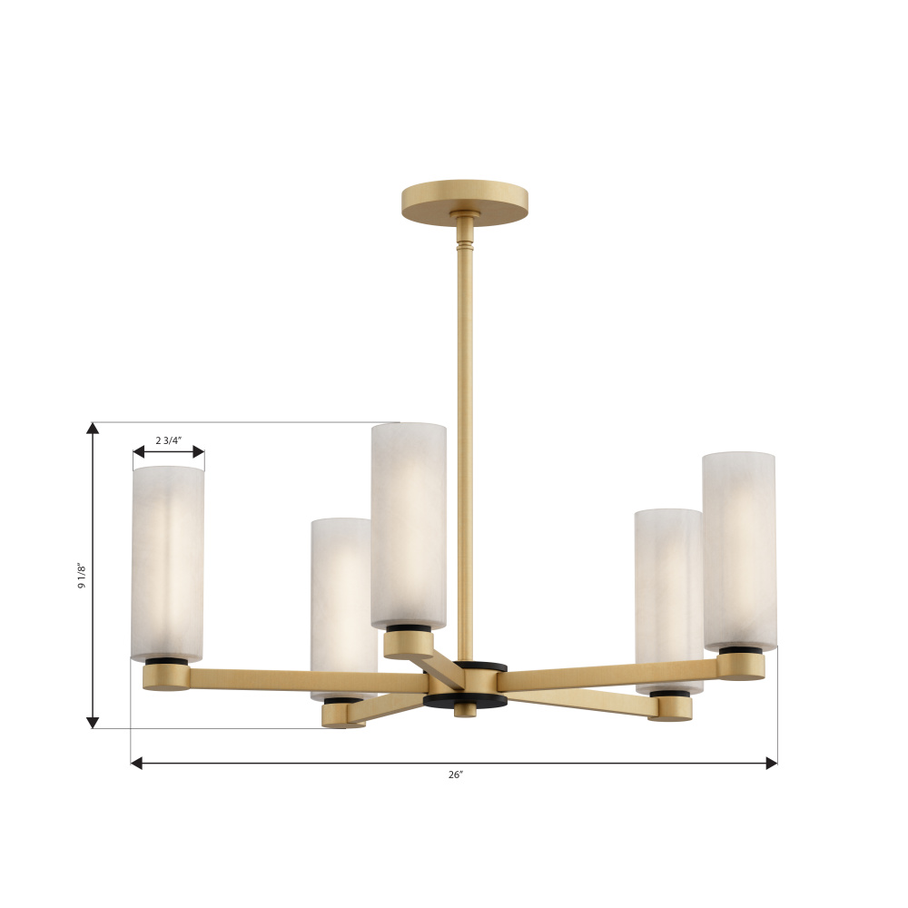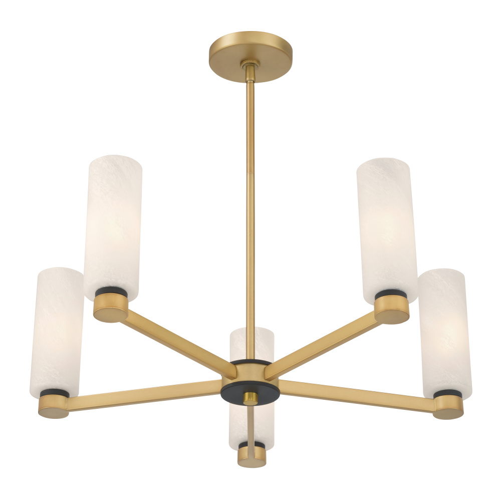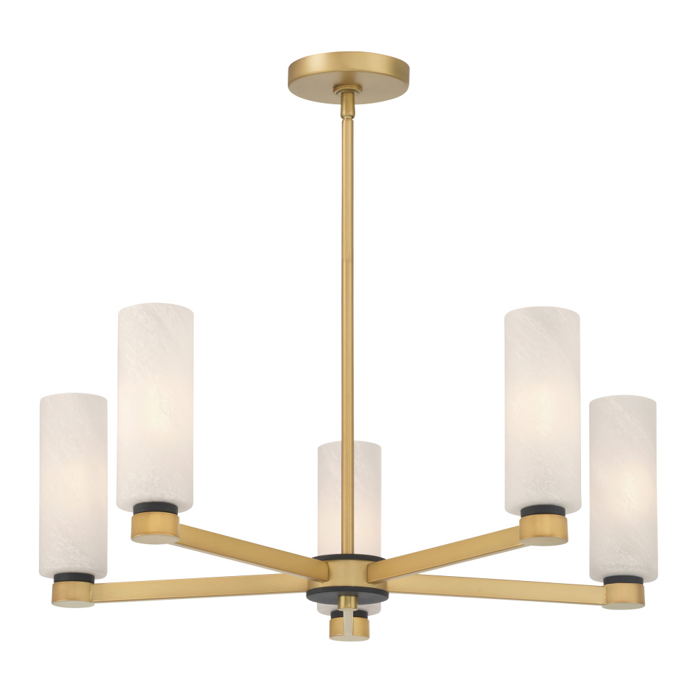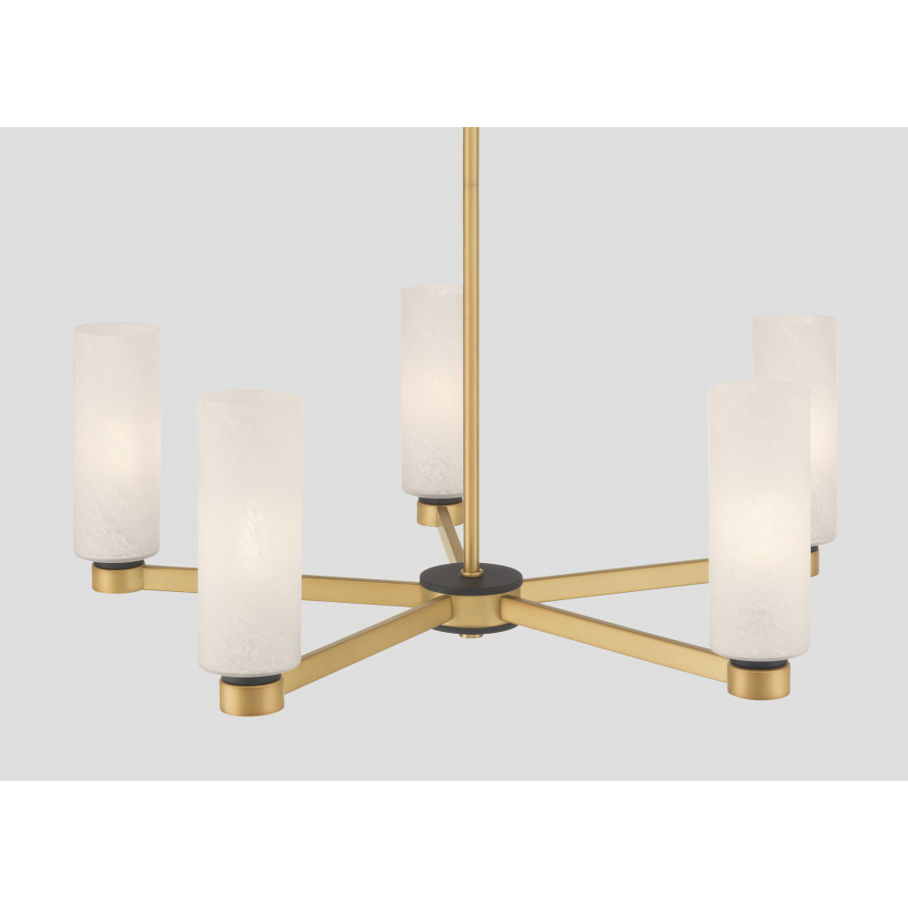 5-Light Chandelier - Legacy Brass and Dark Matte Black with Etched Alabaster Glass