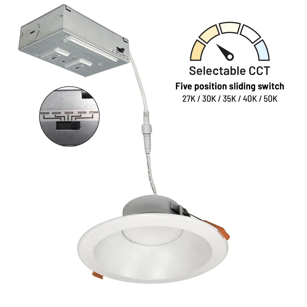 6" Theia LED Downlight with Selectable CCT, 1400lm / 15W, Matte Powder White Finish