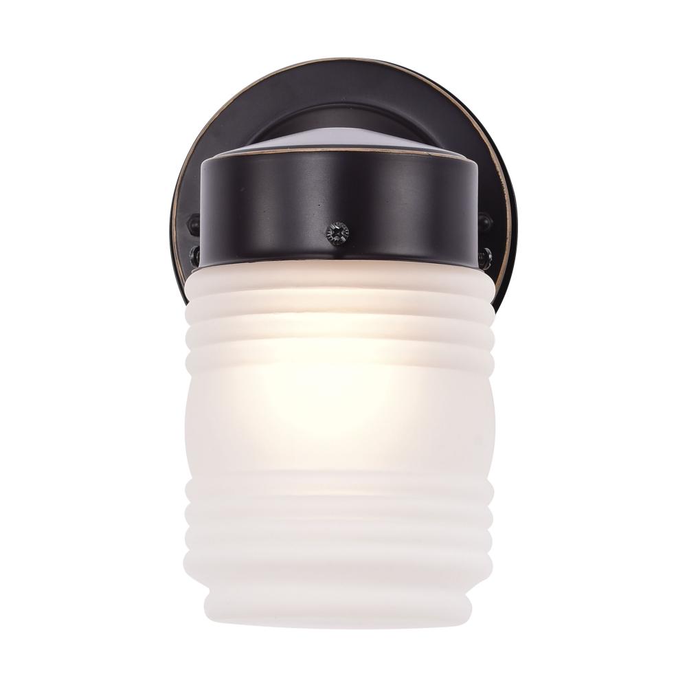 1 Light; 6 Inch; Porch; Wall; Mason Jar with Frosted Glass; Mahogany Bronze Finish; Color retail