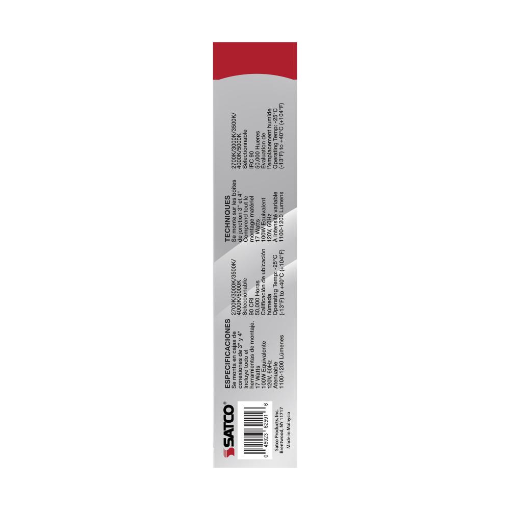 Introducing SATCO NUVO's 62-1811 LED CCT Selectable Disk Light with ColorQuick technology! This 10-inch, 17-watt disk light in white features a high CRI of 93, 2.5kV surge protection, and wet location rating. This CCT Selectable Disk Light is rated for