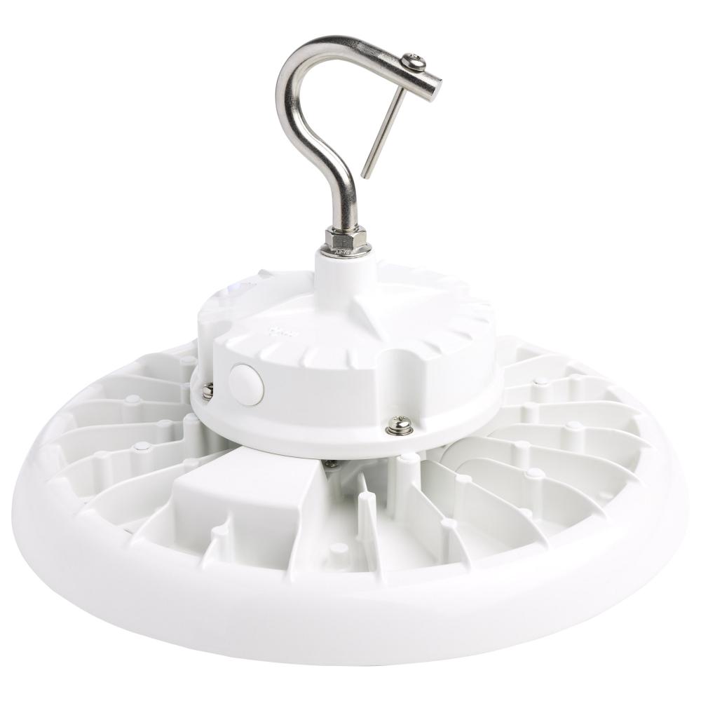SATCO NUVO's 100-watt, 4000K, white UFO LED High Bay offers superior value and meets the needs of numerous applications. A few add-ons that are available for purchase for this item include a pendant adapter, emergency battery back-up, protective wire g