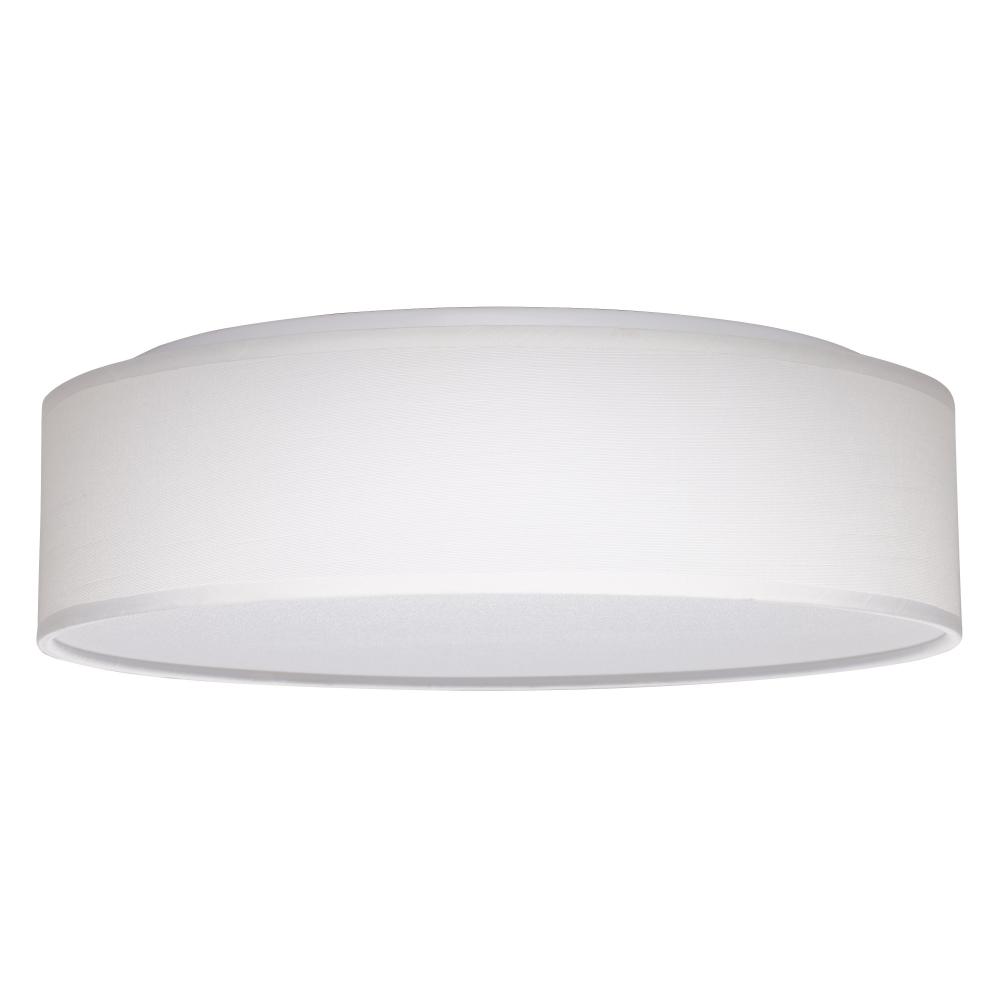 SATCO NUVO's 62-999 20 watt, 15 inch white fabric shade flush fixture delivers on style and function with its energy efficient integrated LED technology. Easily choose between warm to cool lighting with its 3 CCT selectable color options in 3000K/4000K