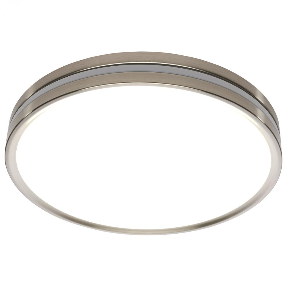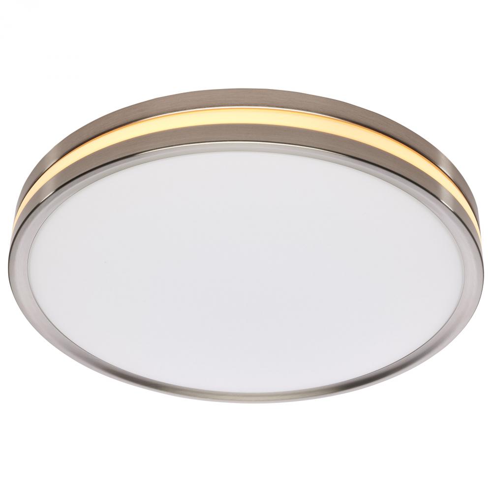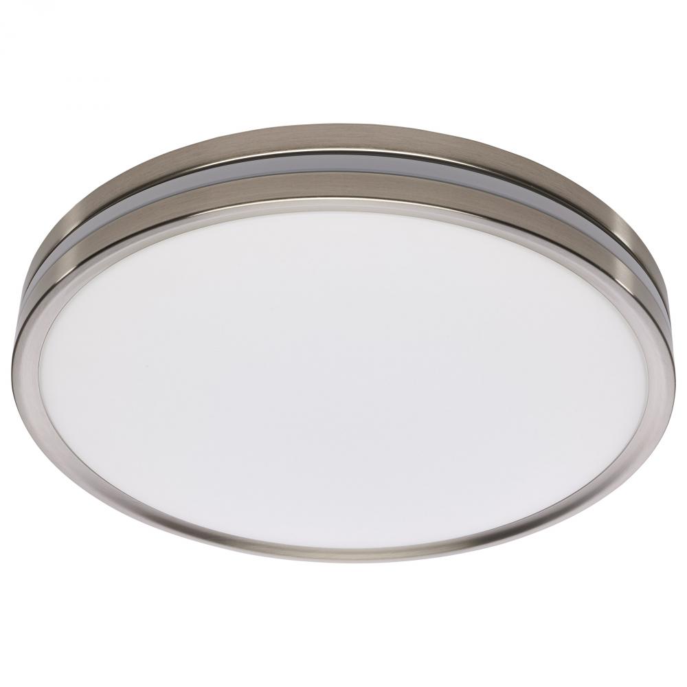Illuminate your space with SATCO NUVO's 62-1692 Flush Mount Fixture featuring a built-in nightlight that is 15 inches with a Brushed Nickel finish. Enjoy the convenience of clear 90 CRI lighting from a classic flush mount fixture, but with the added be