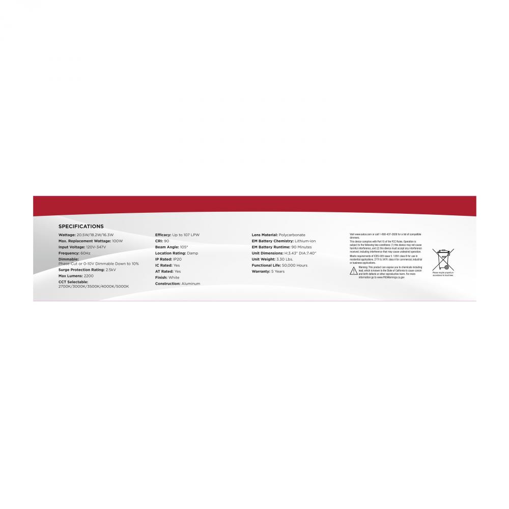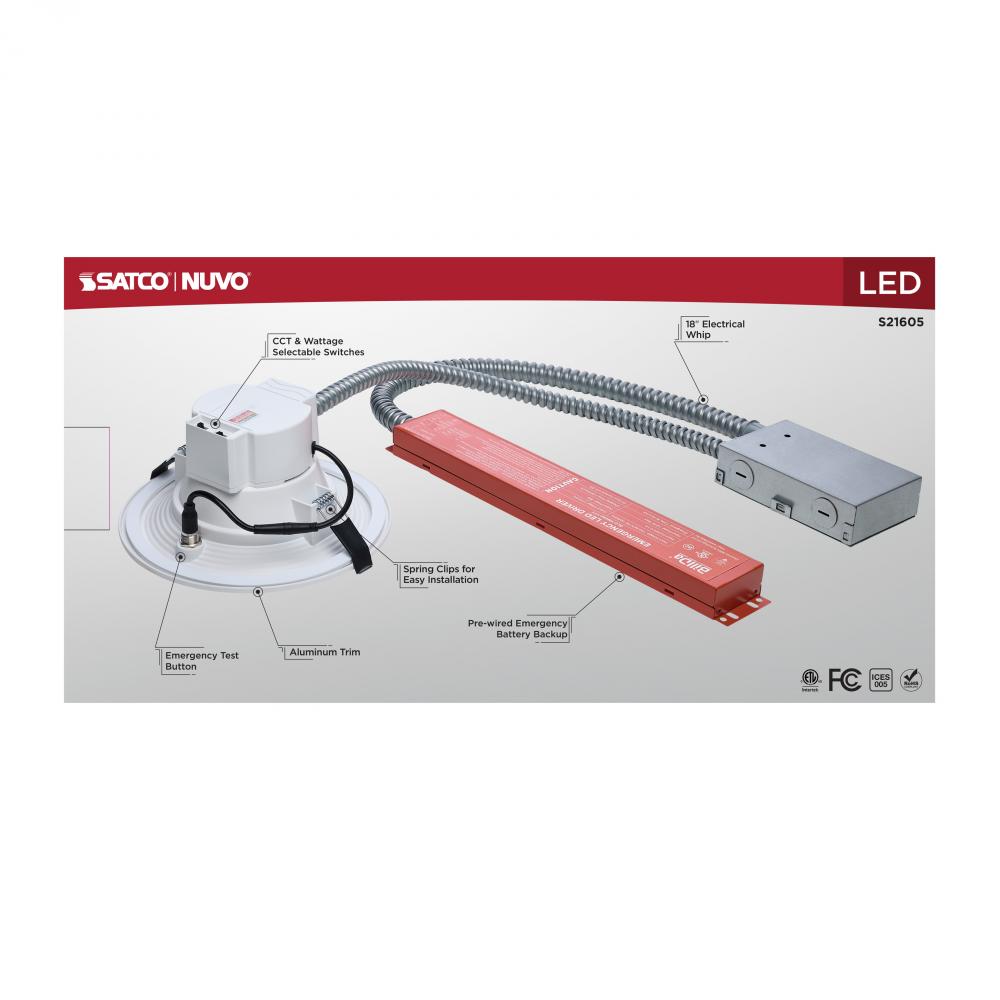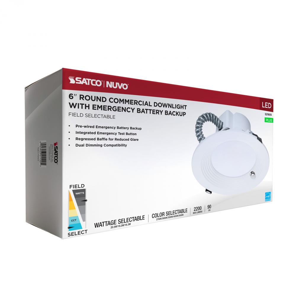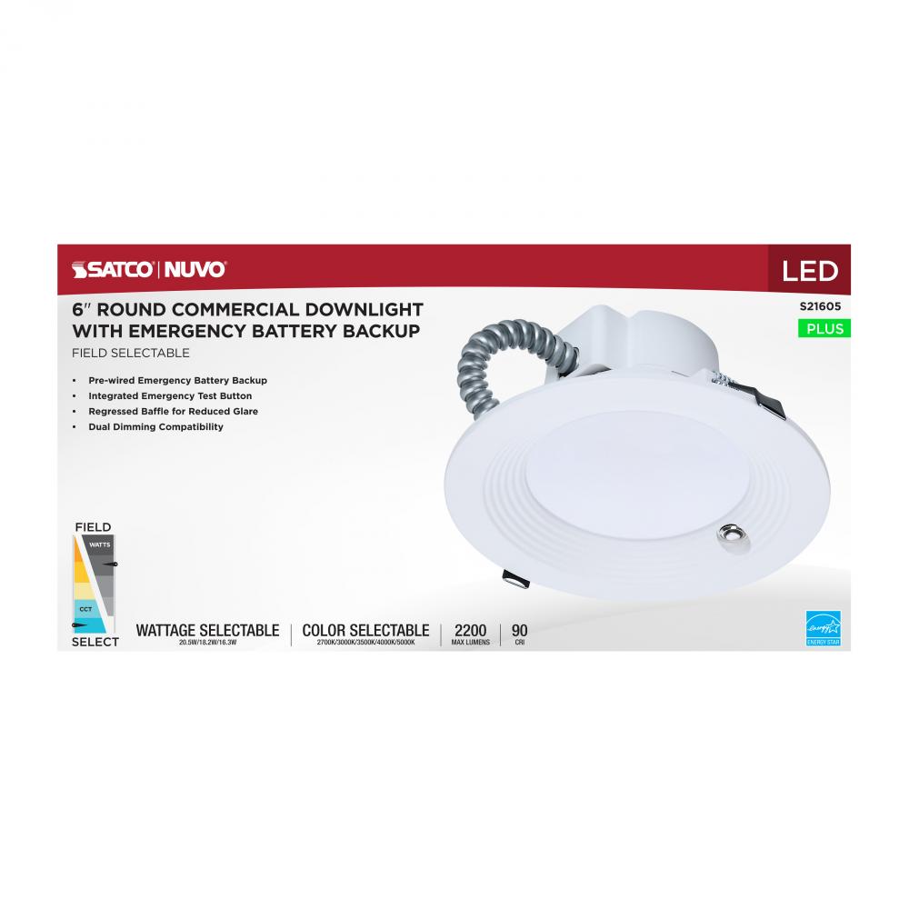 SATCO NUVO's Plus Series LED Commercial Downlight, S21605, with Emergency Battery Backup delivers exceptional performance and versatility for today's remodel or new construction commercial environments. This 6-inch round fixture features field-sele