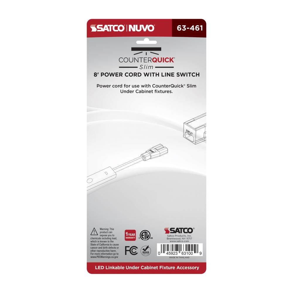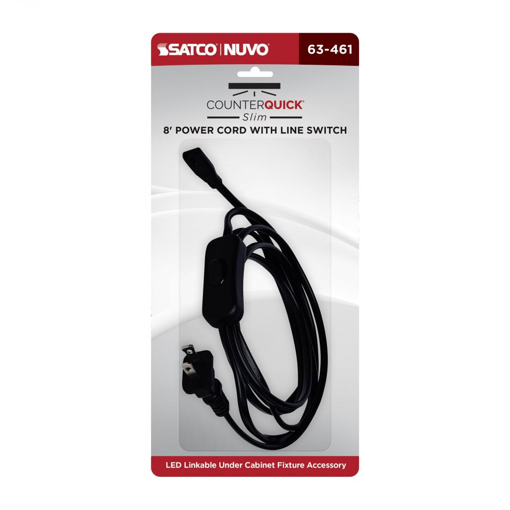 The 63-461 CounterQuick Slim power cord in black makes installation simple for standard plug-in applications. This 8 foot cord includes a line switch for ease of use. Only one power cord needed when linking multiple CounterQuick Slim sets.