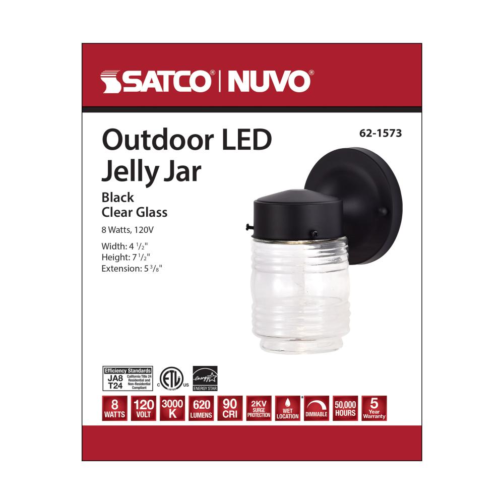 Satco's 62-1573 8-watt is the ideal porch light, but with it's mason jar style and simple fixture body, it could really go anywhere. The clear glass is ribbed adding visual interest and allows for maximum light output. With it's flexible black