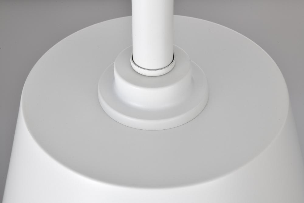 The Alexis 60-7949 small pendant showcases a stylish and understated lighting solution for today's home. The matte white finish is sophisticated and modern on the canopy, rod, and matching metal shade, unifying the overall artistic vision of the design
