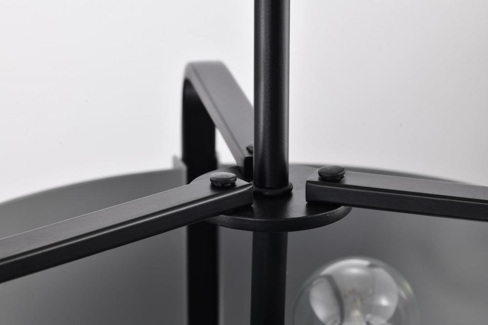 The Altos Collection adds a touch of drama and intrigue to any space. The gray accents provide a coolness to the industrial-inspired construction, which is finished in a velvety, matte black. The meticulous attention to detail in the laser-cut shade and ma