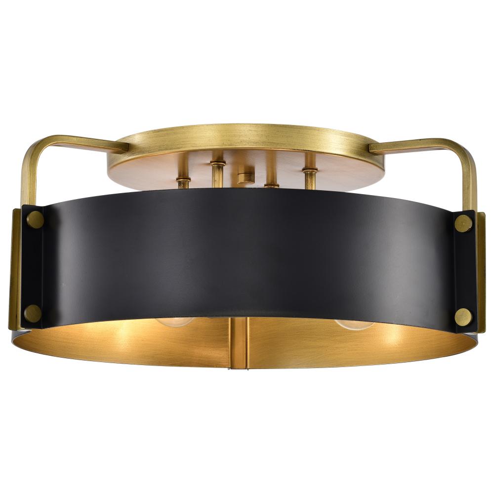 Altos 4 Light Semi Flush; Matte Black and Natural Brass Finish