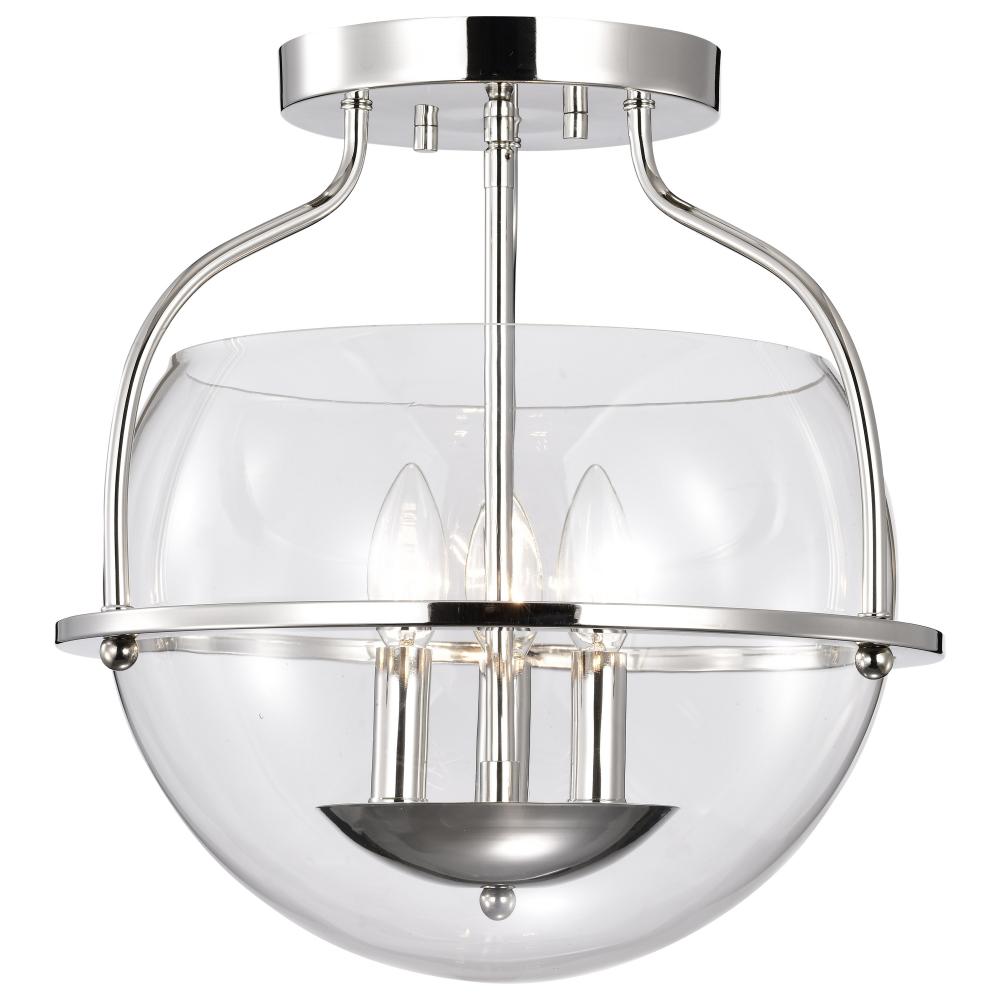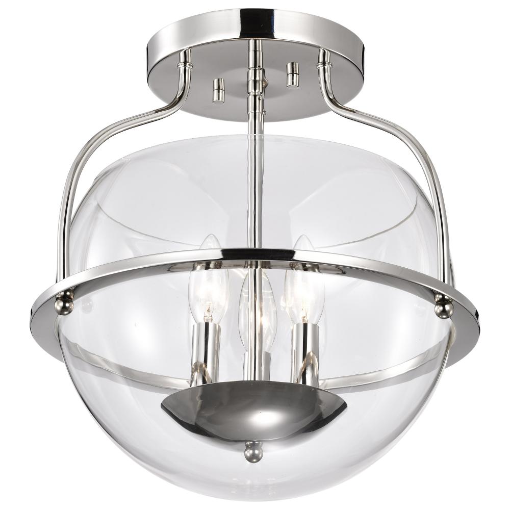 Amado 3 Light Semi Flush Mount; Polished Nickel Finish; Clear Glass