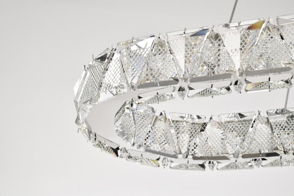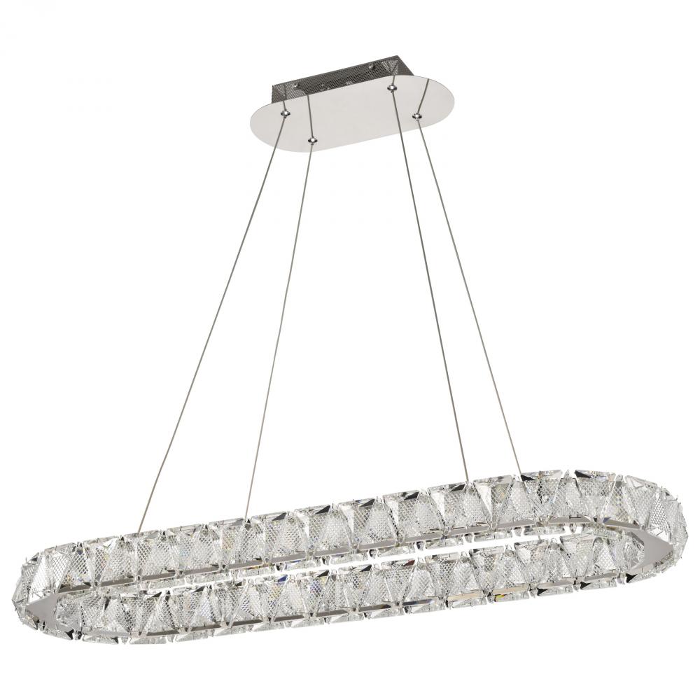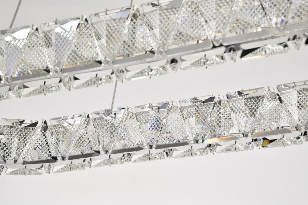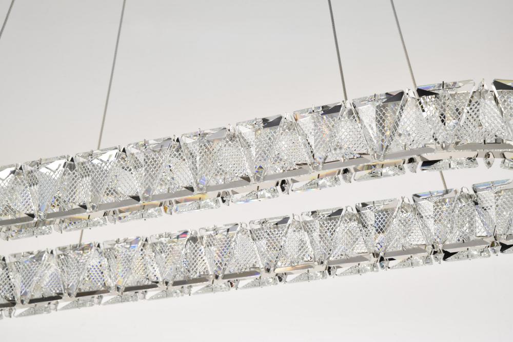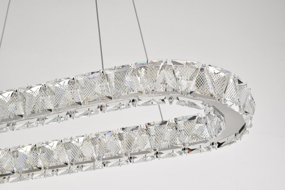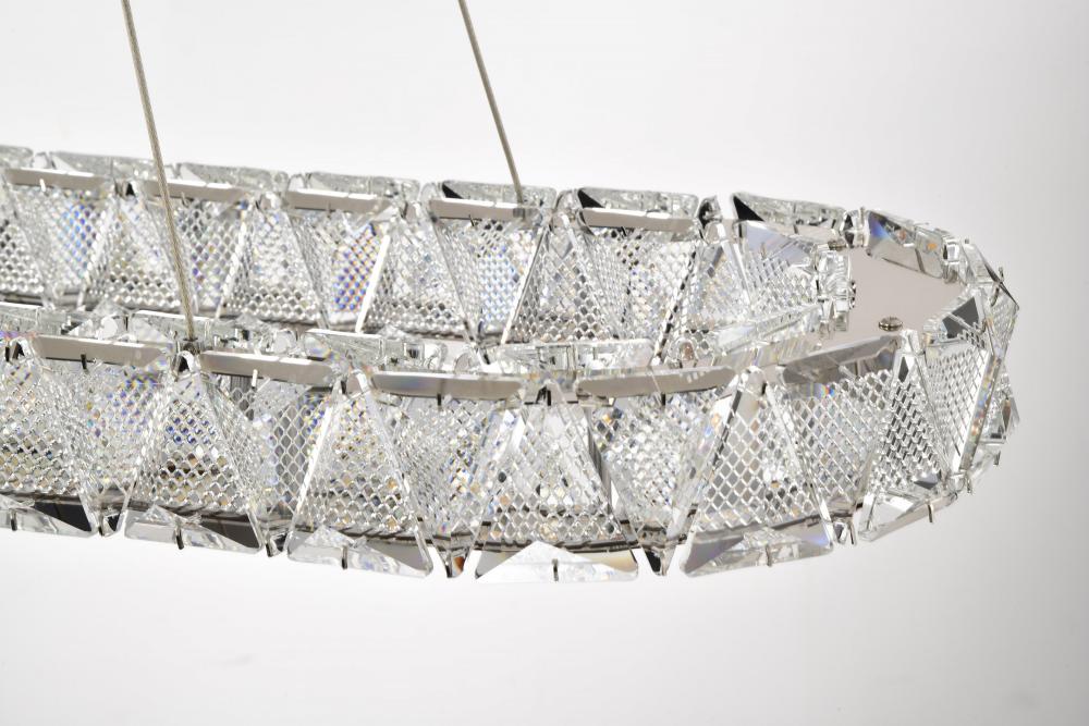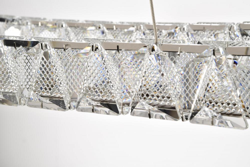 Featuring luxurious K9 crystal, each piece of the Asher 62-2443 LED oval island light sparkles with brilliance and sophistication, reflecting the light to mesmerizing effect. Finished in polished nickel, it offers a refined contrast that enhances its cryst