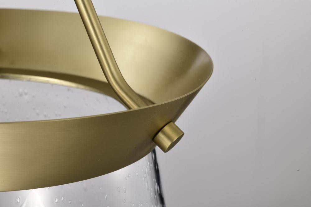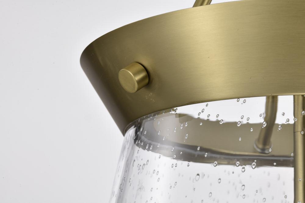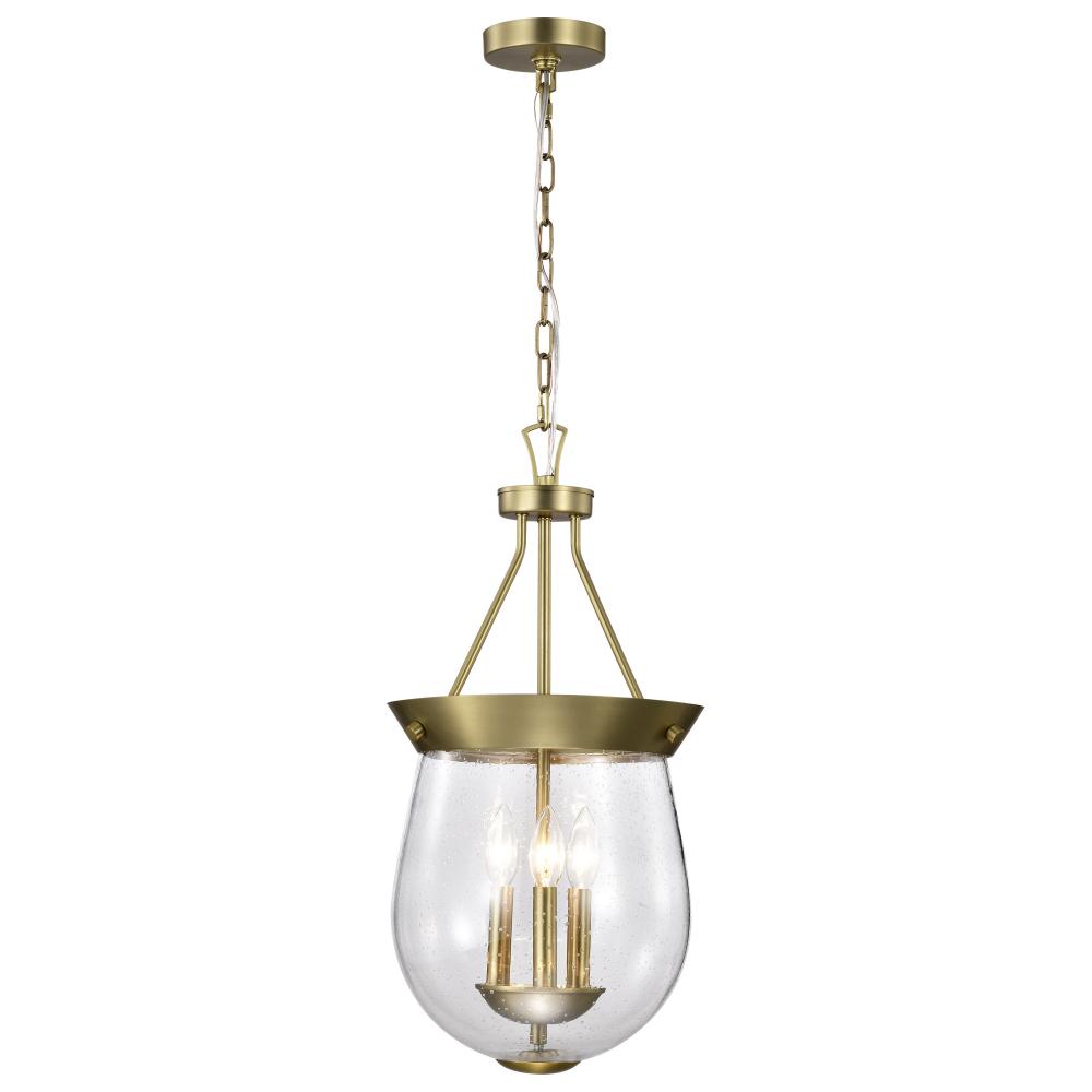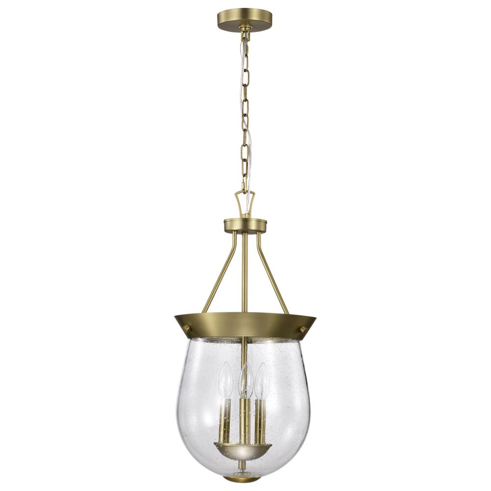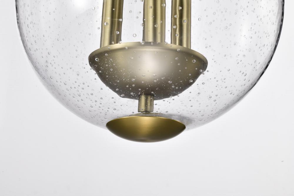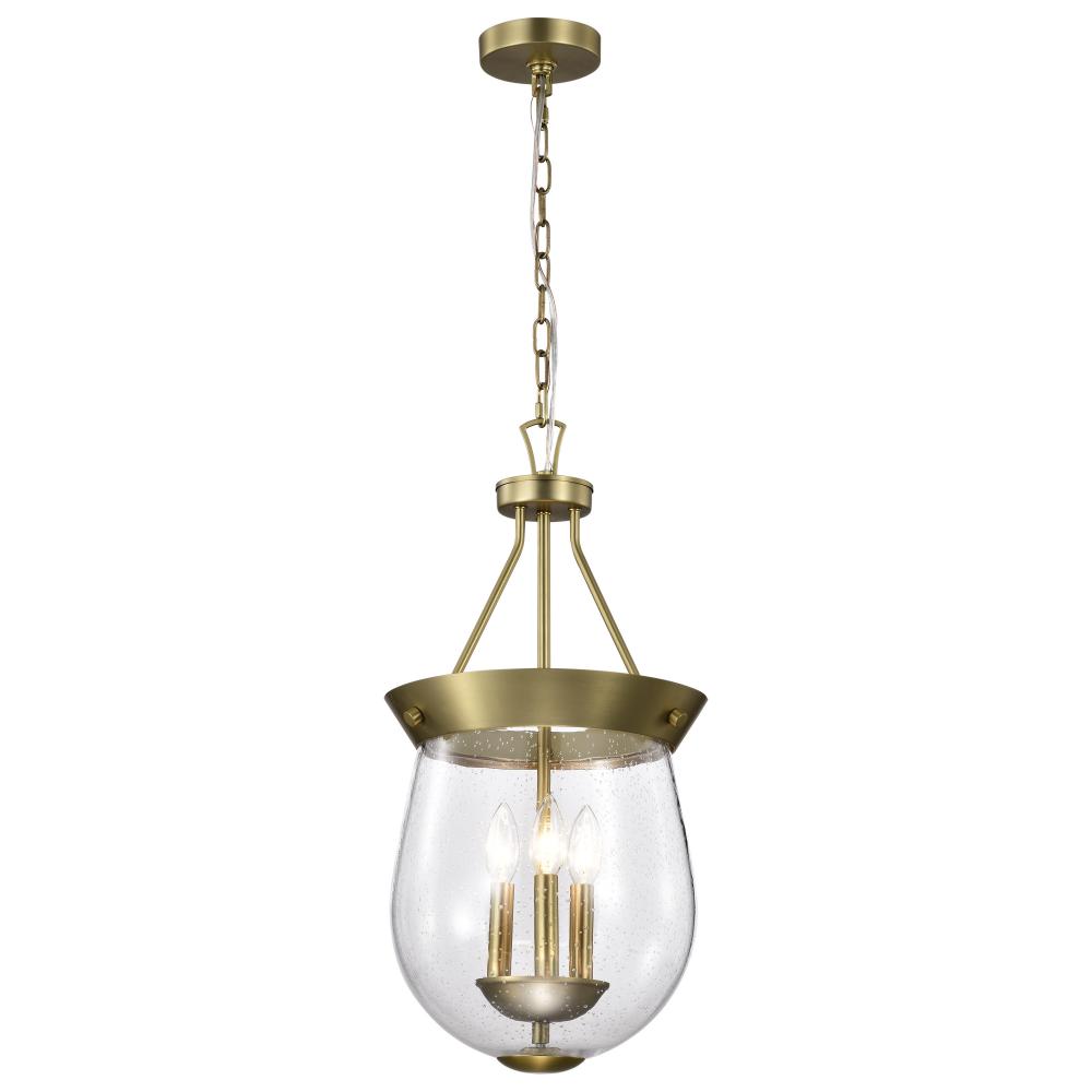 Boliver 3 Light Pendant; 11 Inches; Vintage Brass Finish; Clear Seeded Glass