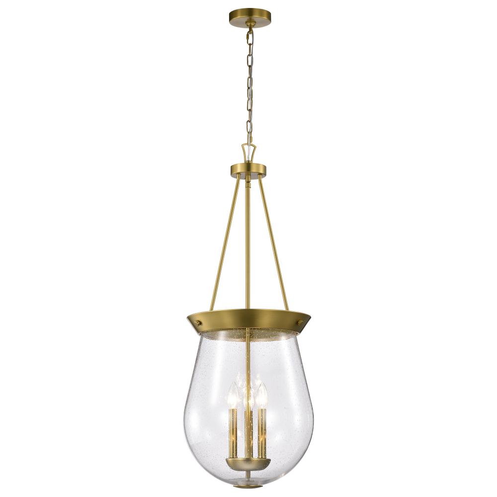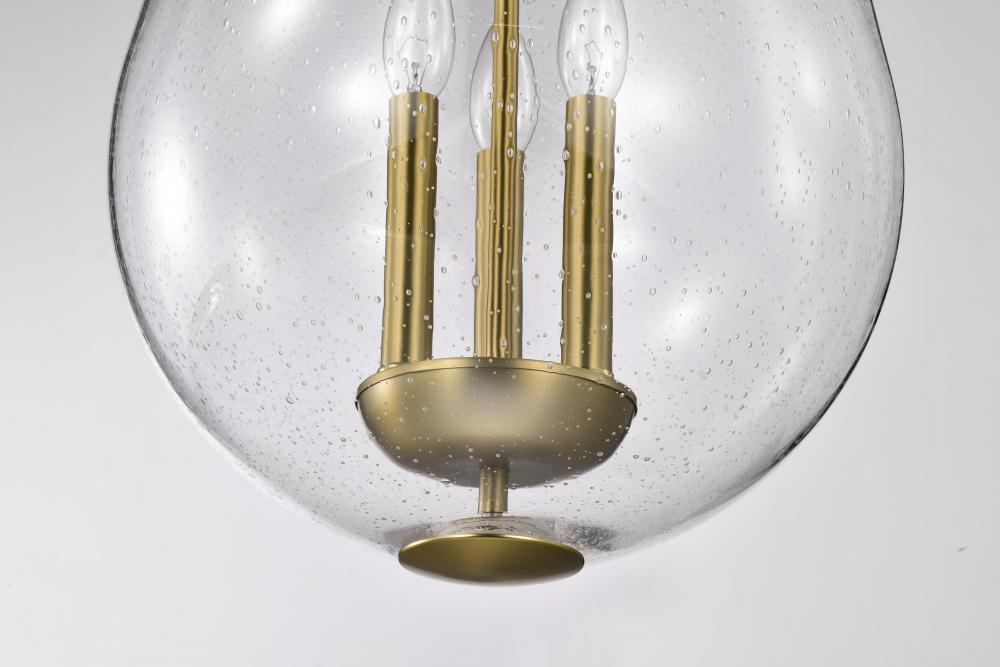 Boliver 3 Light Pendant; 14 Inches; Vintage Brass Finish; Clear Seeded Glass