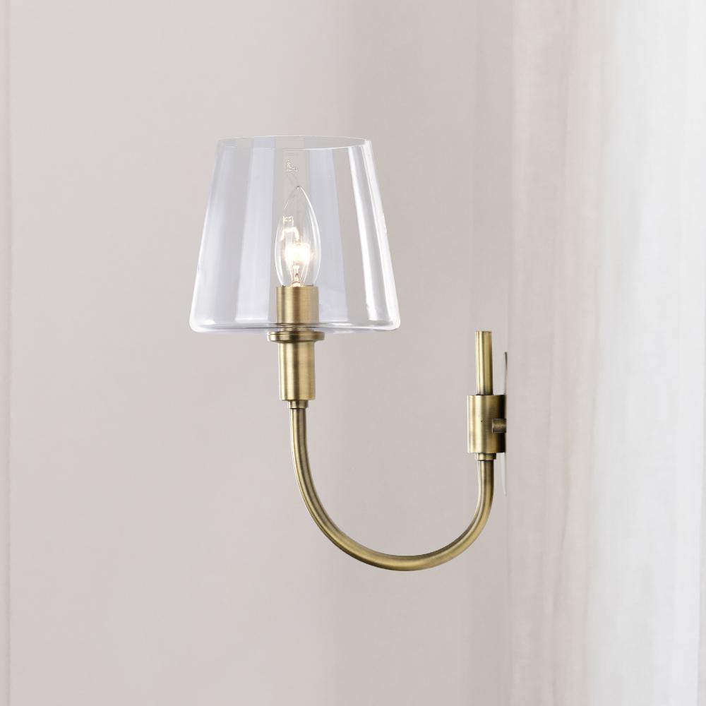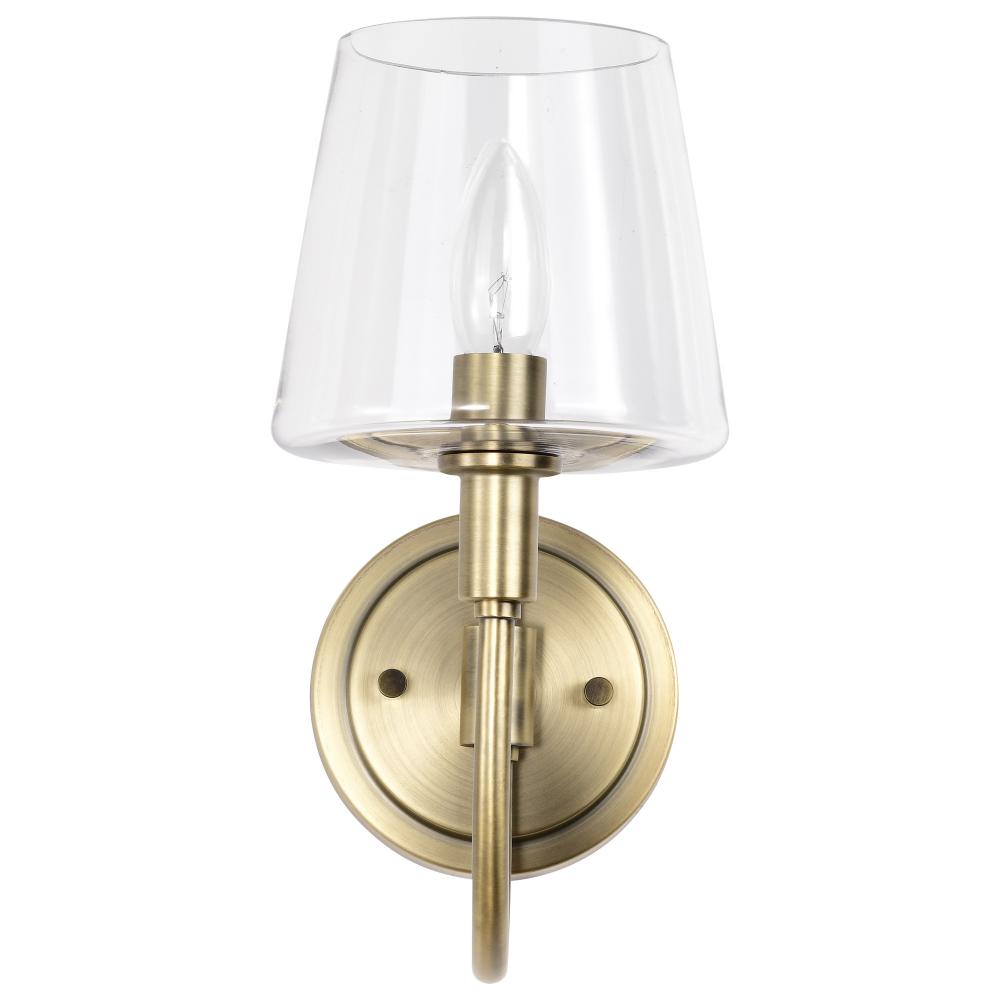 Brookside 1 Light Sconce; Vintage Brass Finish; Clear Glass