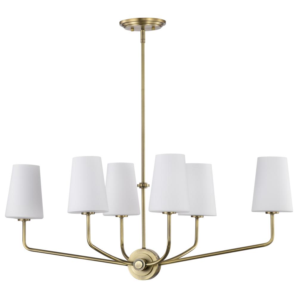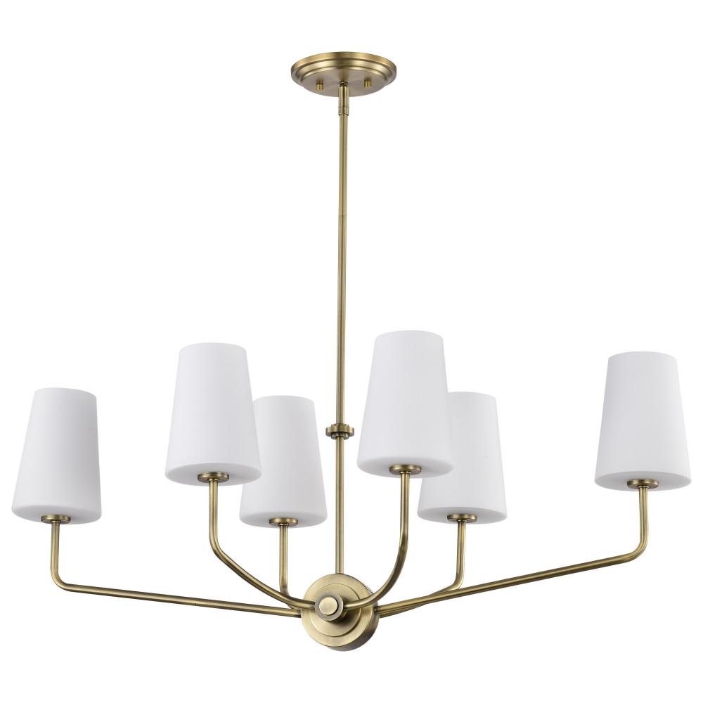 Cordello 6 Light Island Pendant; Vintage Brass Finish; Etched White Opal Glass