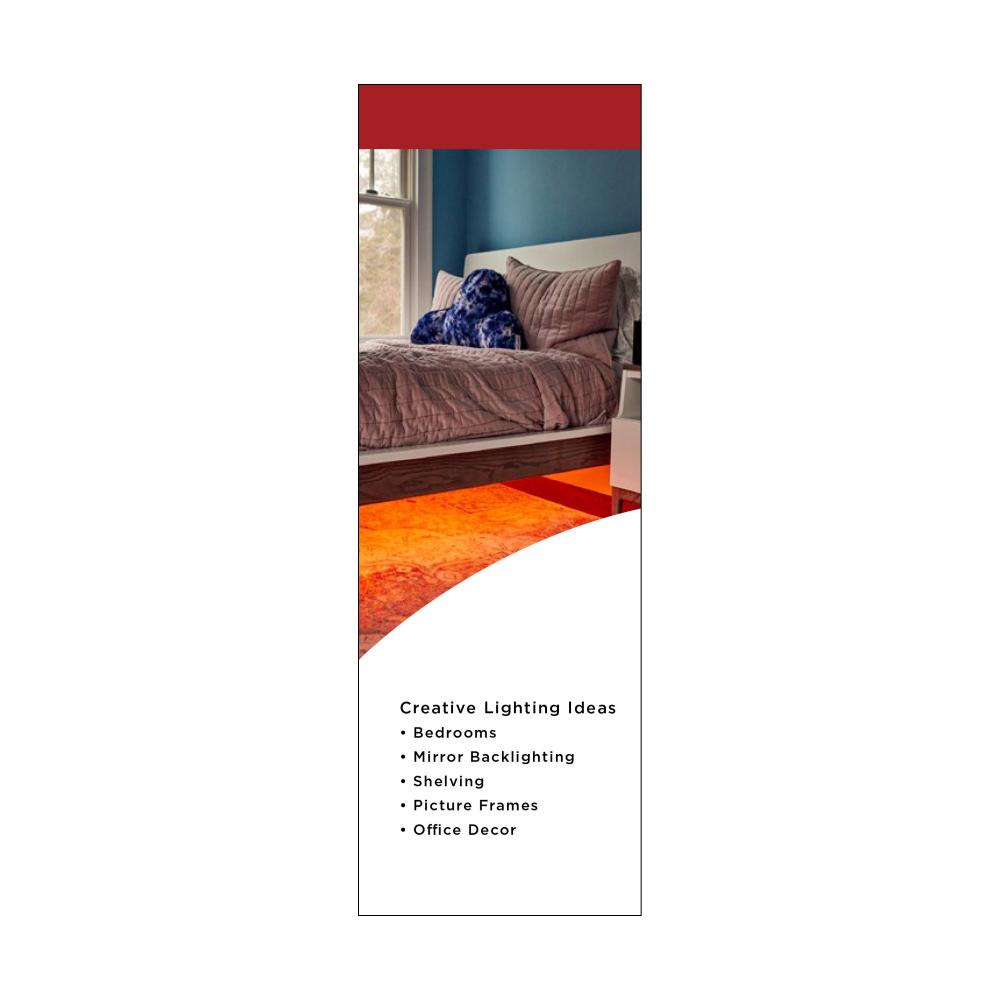 DIMENSION Color 64-100 tape light is the perfect way to add a vibrant splash of color, an easy and playful lighting solution designed with simplicity in mind. Our LED tape is ideal for kids and anyone looking to add easy and fun lighting bursting with vivi