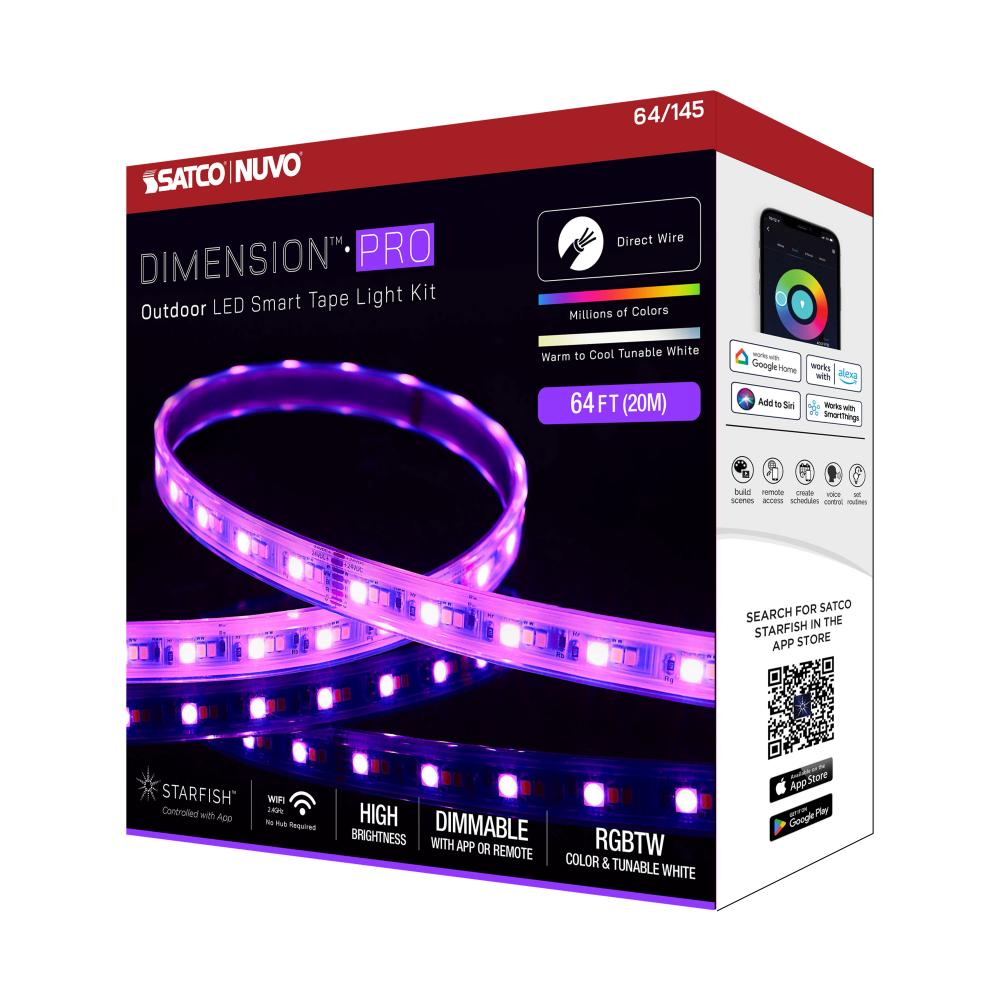 Dimension Pro; Tape Light strip; 64 ft.; Hi-Output; RGB plus Tunable White; J-Box connection; IP65; Starfish IOT Capable; RF Remote Included; White Finish