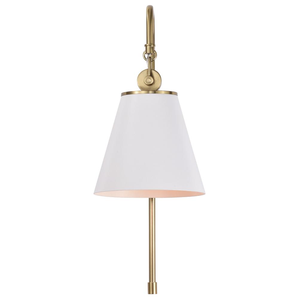 With subtle detailing, the Dover 60-7446 wall sconce is graceful yet unassuming. The simple white shade features a white lining to reflect the light, and the trim is finished in vintage brass to match the fixture's body. Place in a dining room for ambi