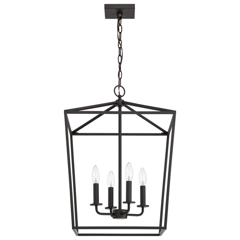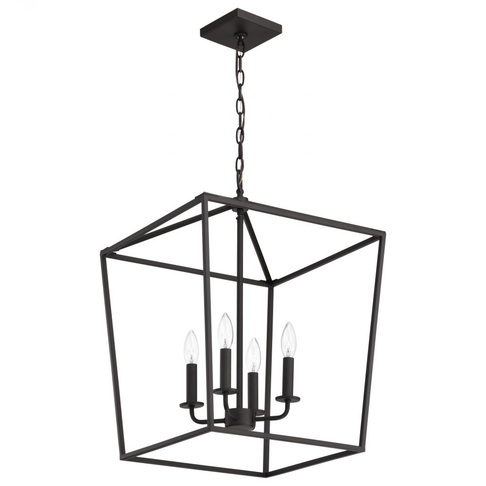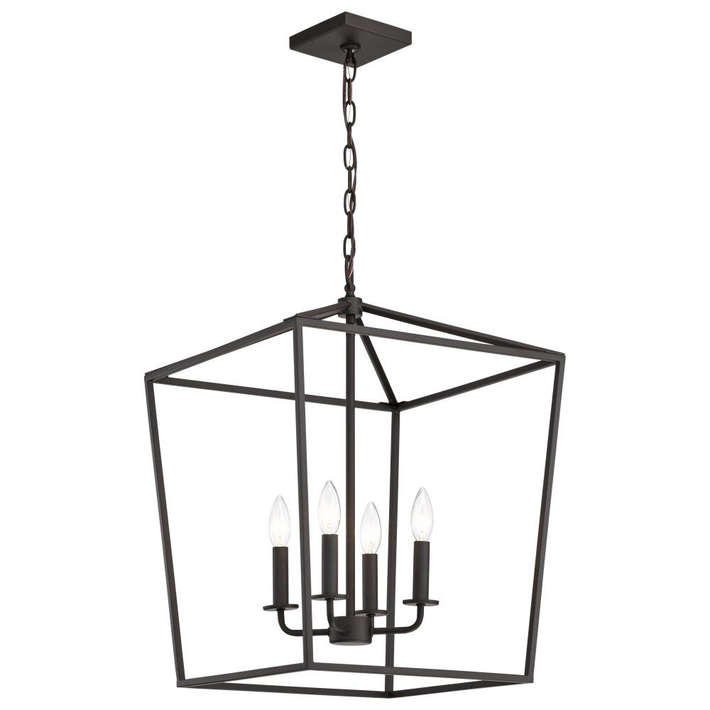 A stylish lighting fixture that combines transitional elements with minimal design, Emma 60-7952 large pendant is a knockout. The richness of the dark bronze finish on the simple framework is highlighted by four candelabra bulbs, exuding elegant charm with