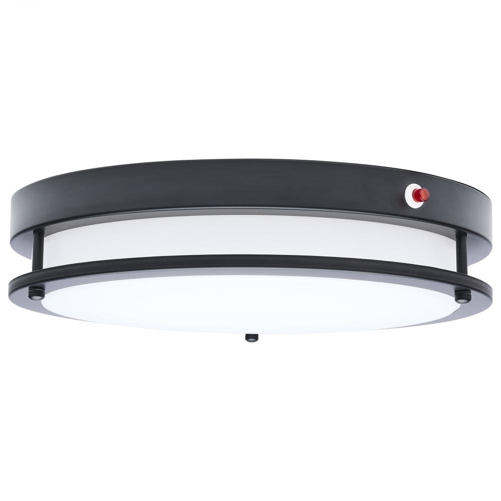 The SATCO NUVO 62-1891 13-Inch Glamour LED flush mount fixture in matte black features a built-in emergency battery backup that provides up to 90 minutes of illumination during power outages-offering critical reliability with an elegant design. An integrat