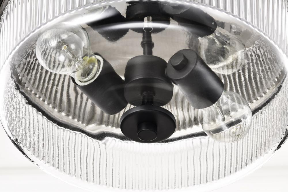 Finished in Matte Black with Clear Ribbed Glass