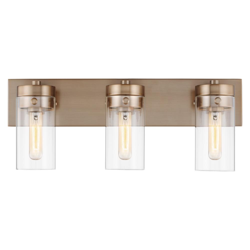 Intersection; 3 Light; Vanity; Burnished Brass with Clear Glass