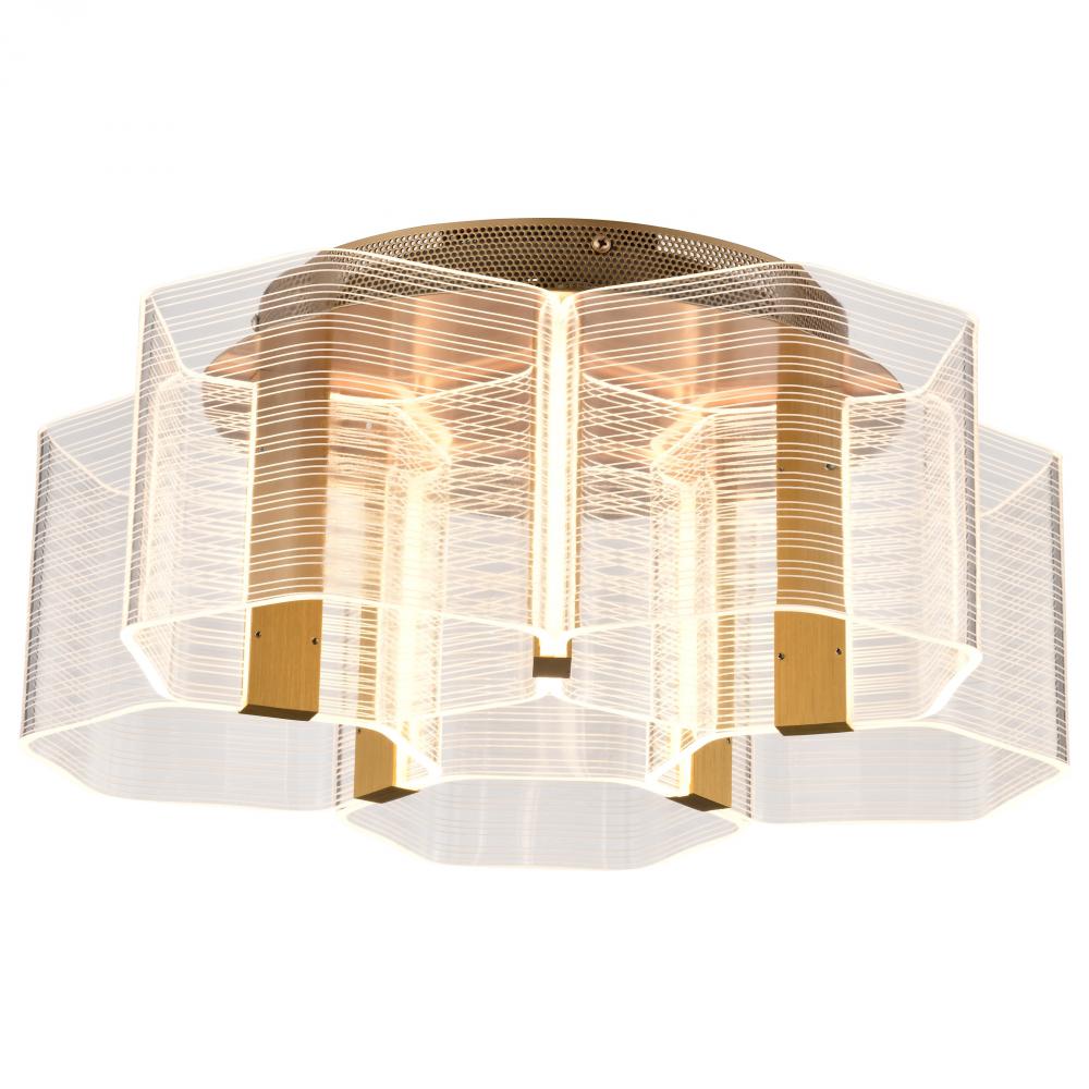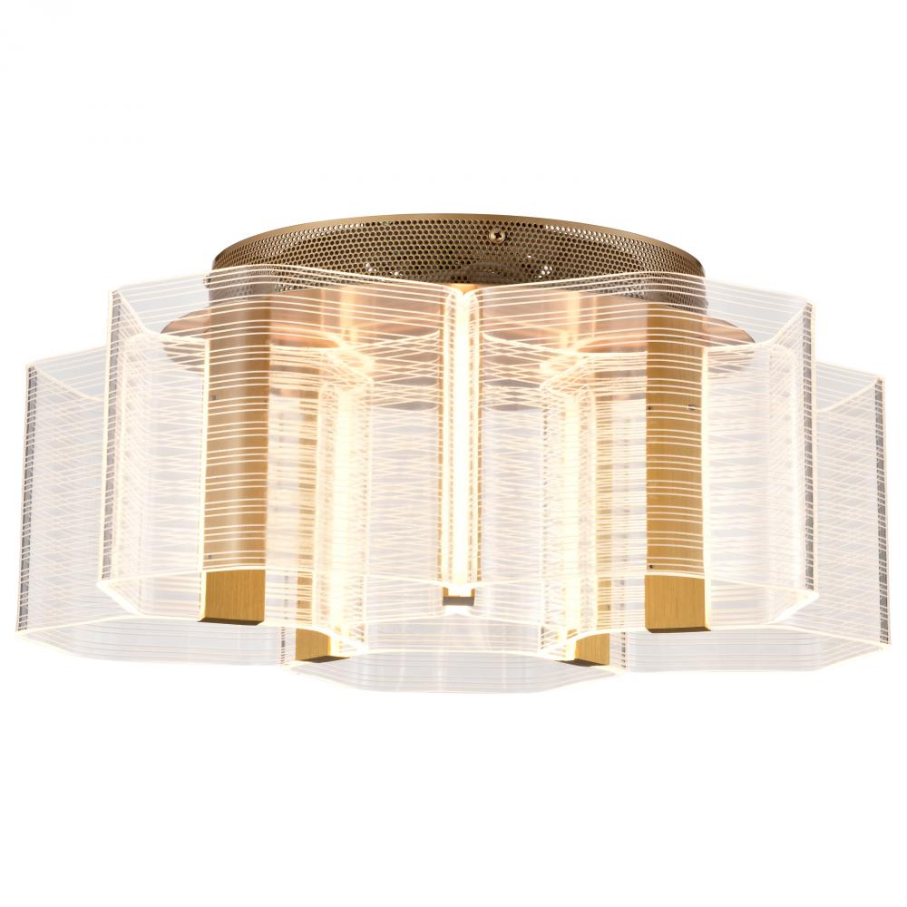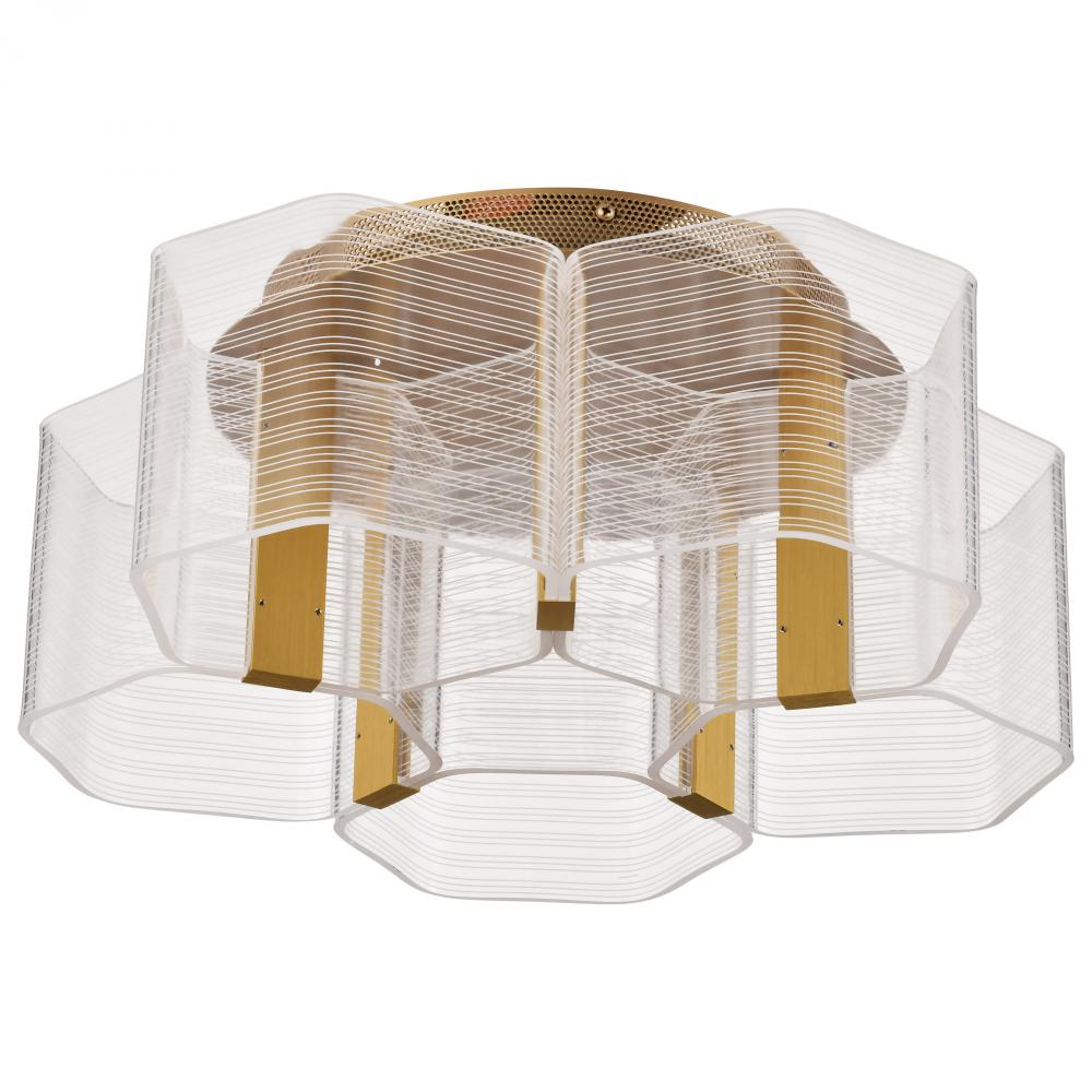 Kenzo; LED 5 Light Flush Mount; Vintage Brass Finish; Light Guide Panel