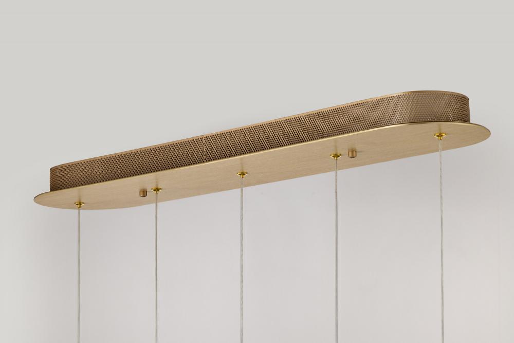 Kenzo; LED 6 Light Island Pendant; Polished Anodized Bronze Finish; Light Guide Panel