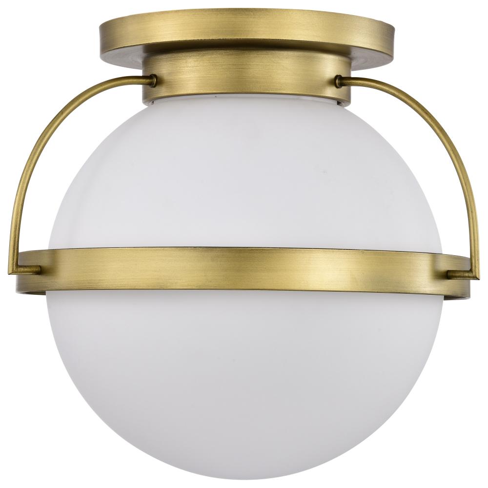 Lakeshore 1 Light Large Flush; Natural Brass Finish; White Opal Glass