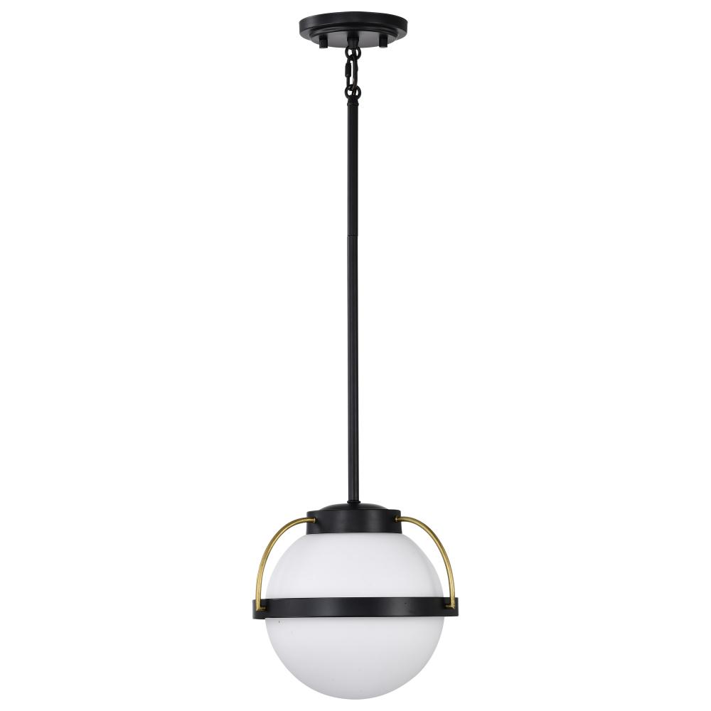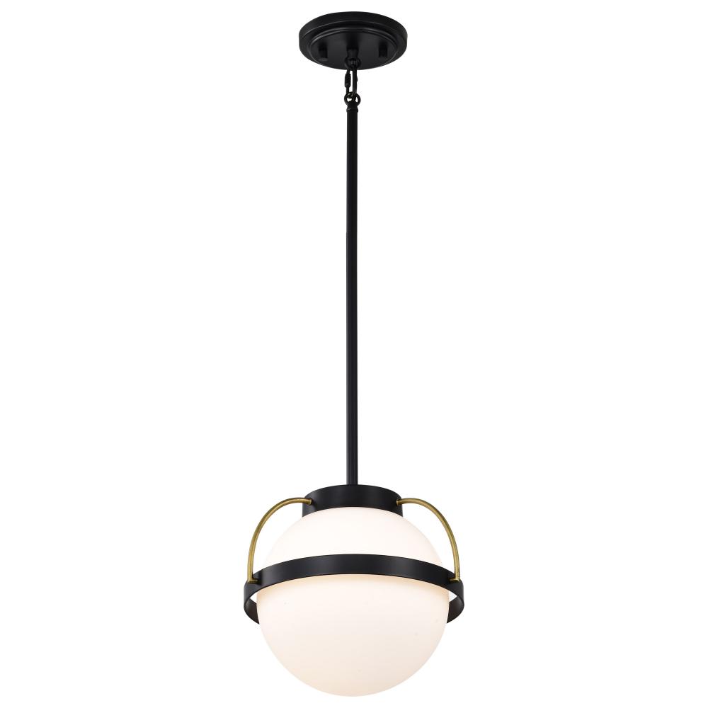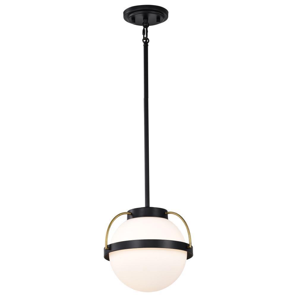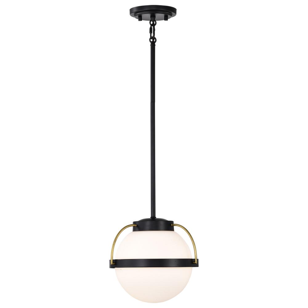 Lakeshore 1 Light Small Pendant; Matte Black & Natural Brass Finish; White Opal Glass