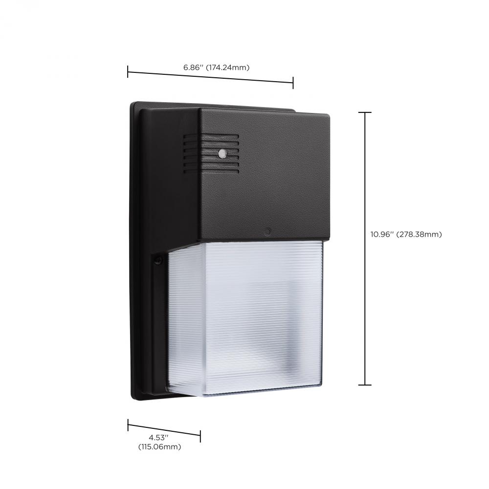 SATCO NUVO's 65-986 bronze LED entryway wall pack offers a sleek and versatile solution for outdoor lighting. Designed with a durable die-cast aluminum construction and an IK08 polycarbonate lens, this fixture ensures reliable performance in demanding
