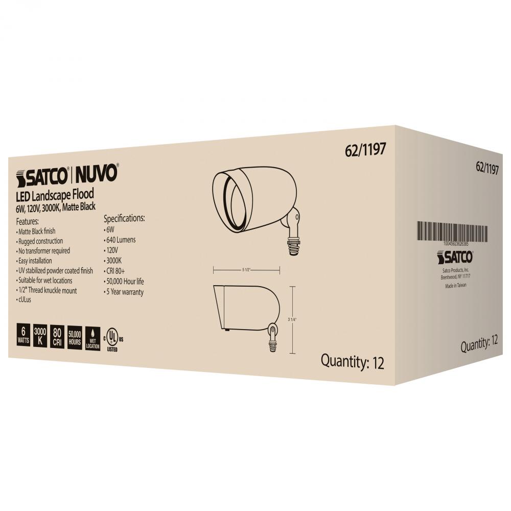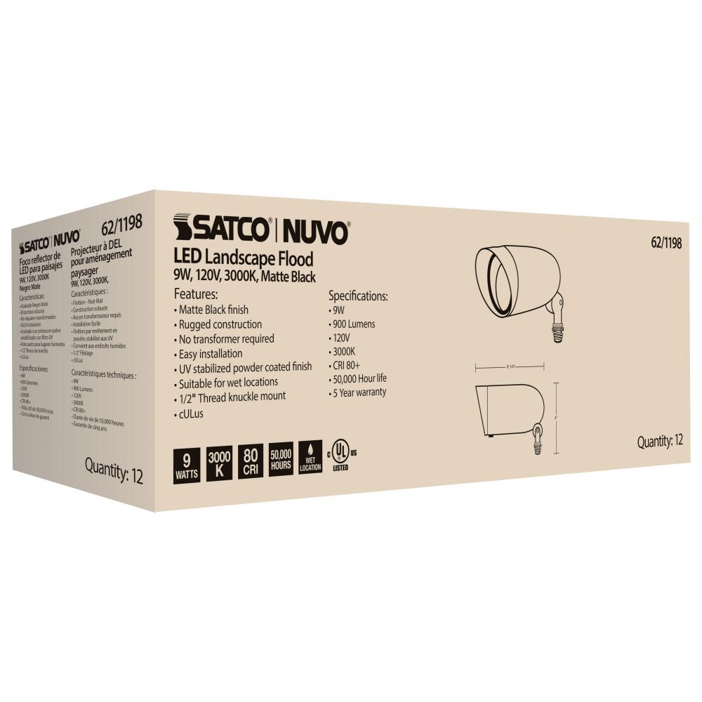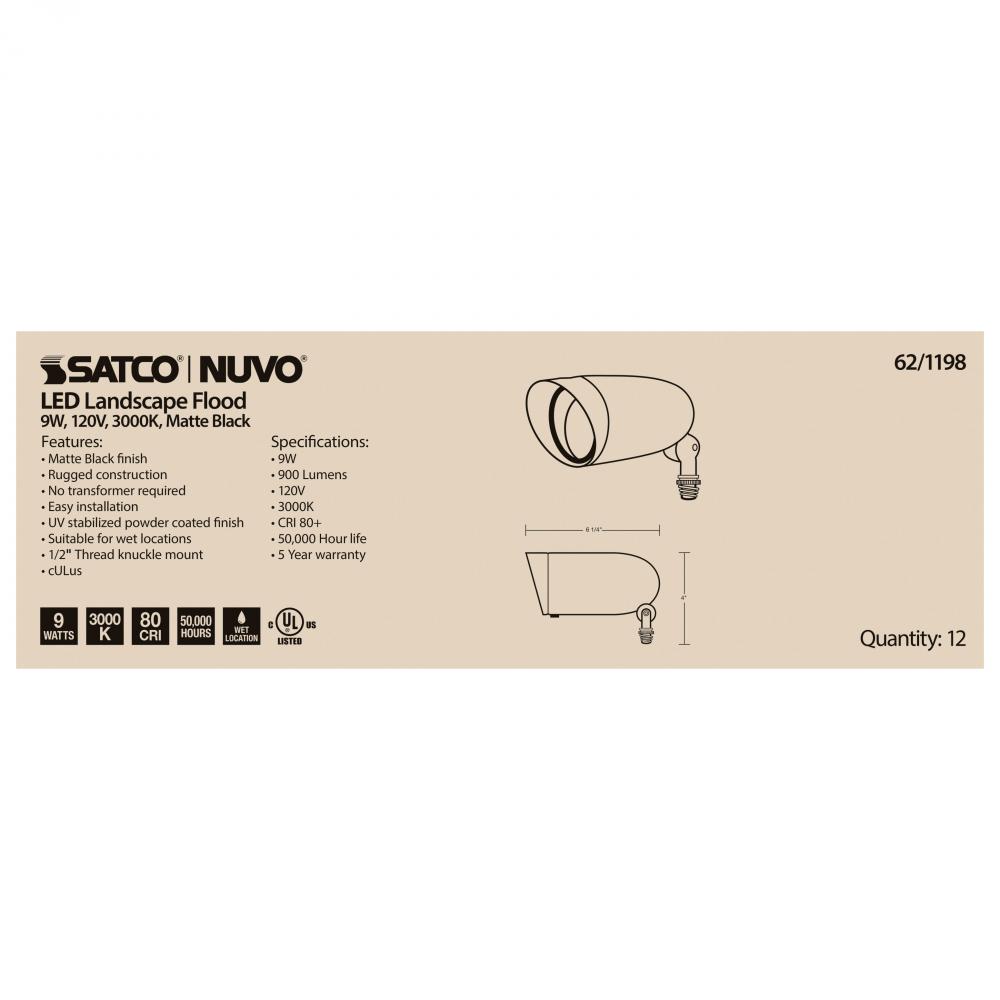 LED Landscape Flood; 9 Watt; Matte Black Finish; 3000K; 120 Volt