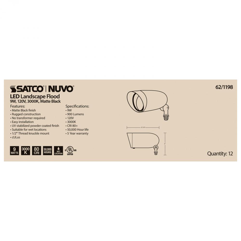 Satco's 9-watt 62-1198 landscape floodlight offers versatility for outdoor use. Its high-quality construction ensures durability in wet locations. Easy installation and energy-efficient LED technology save you time and money.