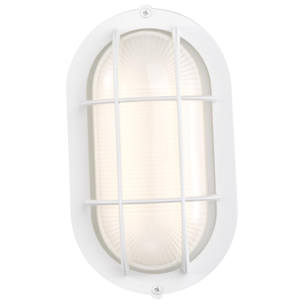 LED Small Oval Bulk Head Fixture; White Finish with White Glass