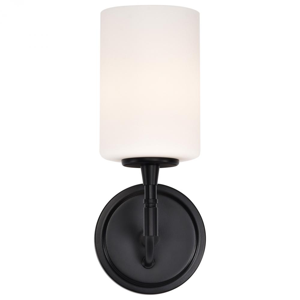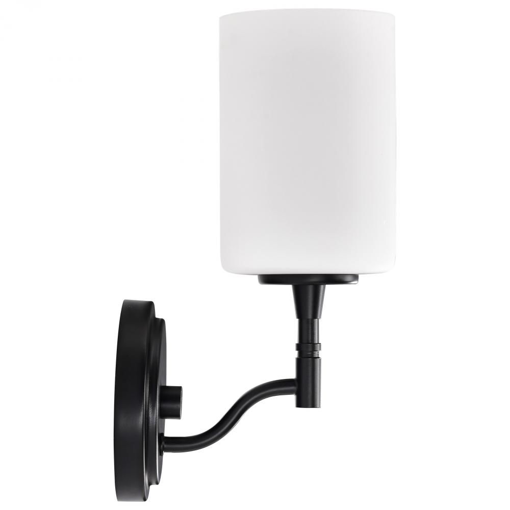 Liam; 1 Light Vanity; Matte Black; White Opal Glass