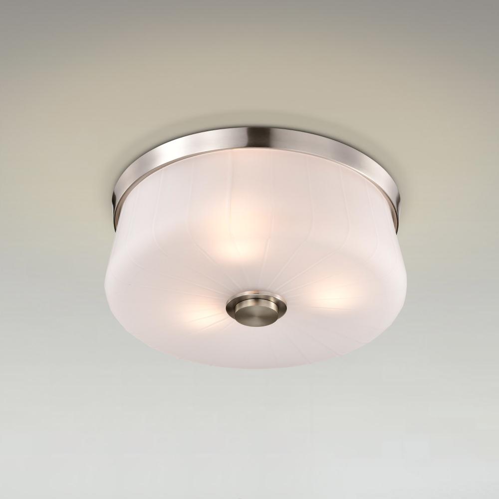 Lune; 3 Light Flush Mount; Brushed Nickel Finish; Etched White Glass