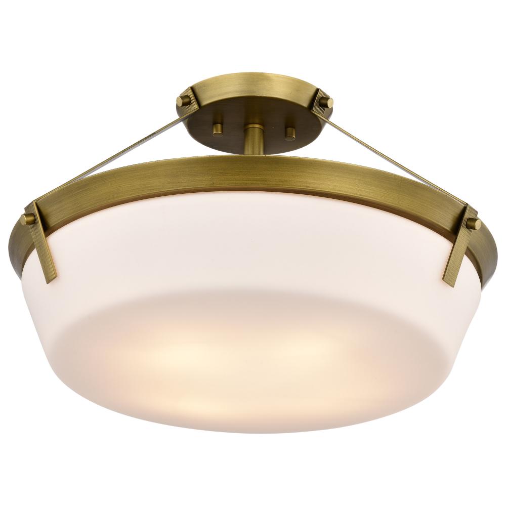 Rowen 4 Light Semi Flush; Natural Brass Finish; Etched White Glass
