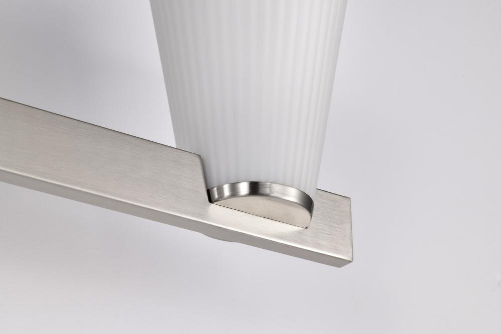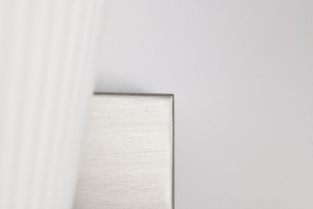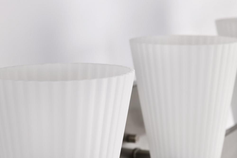 Indulge in the glamour of the Royale Collection, where sleek Art Deco silhouettes meet modern refinement. The satin white pleated glass adds texture and sophistication, diffusing light with a soft, radiant glow. Available in brushed nickel and burnished br
