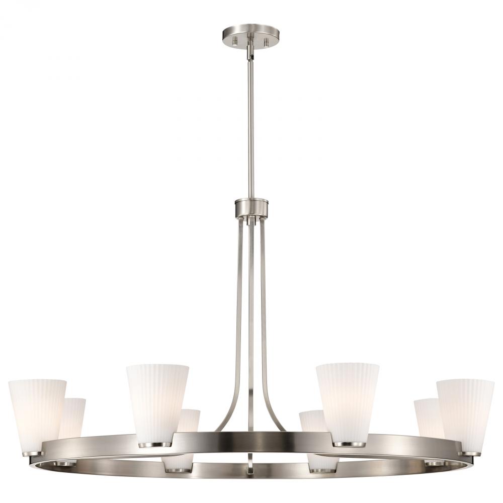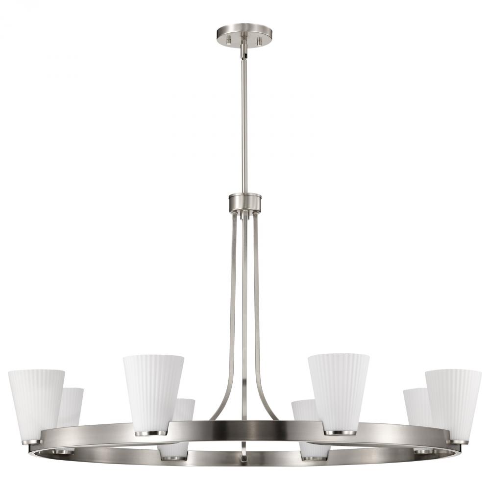 Indulge in the glamour of the Royale 60-8739 eight light chandelier, where sleek Art Deco silhouettes meet modern refinement. The satin white pleated glass adds texture and sophistication, diffusing light with a soft, radiant glow. Finished in brushed nick
