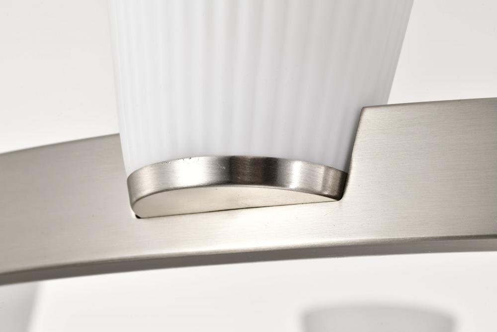 Indulge in the glamour of the Royale Collection, where sleek Art Deco silhouettes meet modern refinement. The satin white pleated glass adds texture and sophistication, diffusing light with a soft, radiant glow. Available in brushed nickel and burnished br